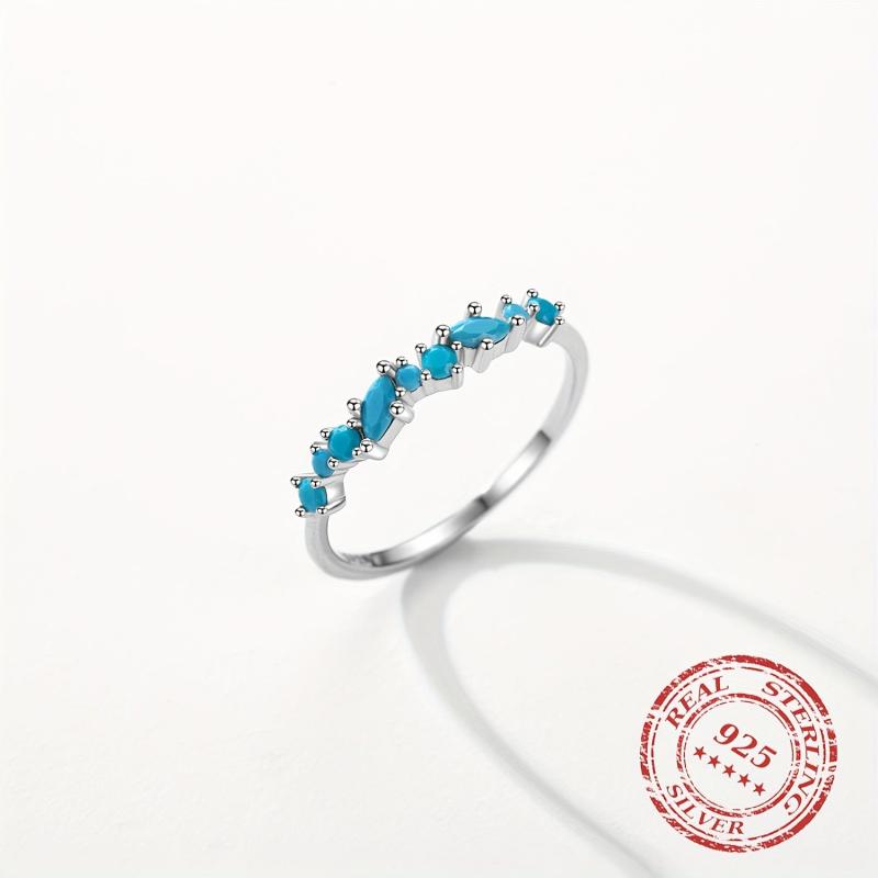 This unique ring is perfect for parties and music festivals. Made from high-quality S925 sterling silver with synthetic turquoise inlay, it adds a touch of elegance to any outfit.
