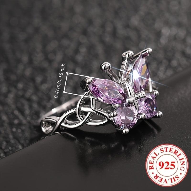This stunning 925 silver butterfly ring features sparkling cubic zirconia stones. A perfect gift for birthdays or special occasions.