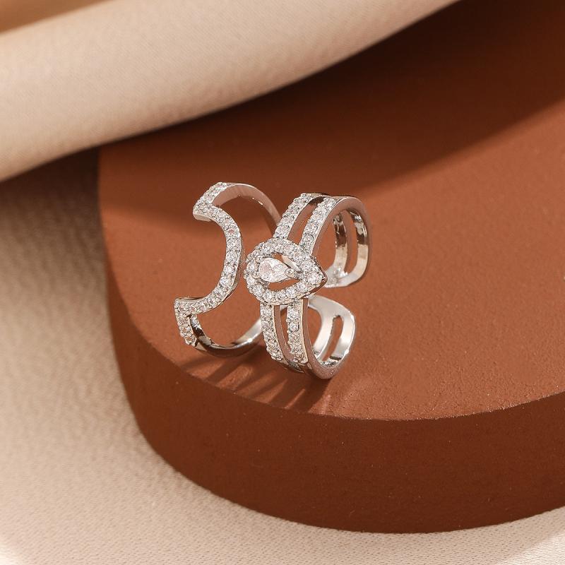 Elegant vintage cuff ring made of copper with zirconia inlay and synthetic birthstone, perfect for Valentine's Day.
