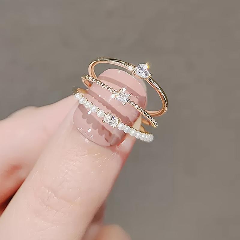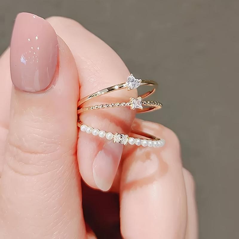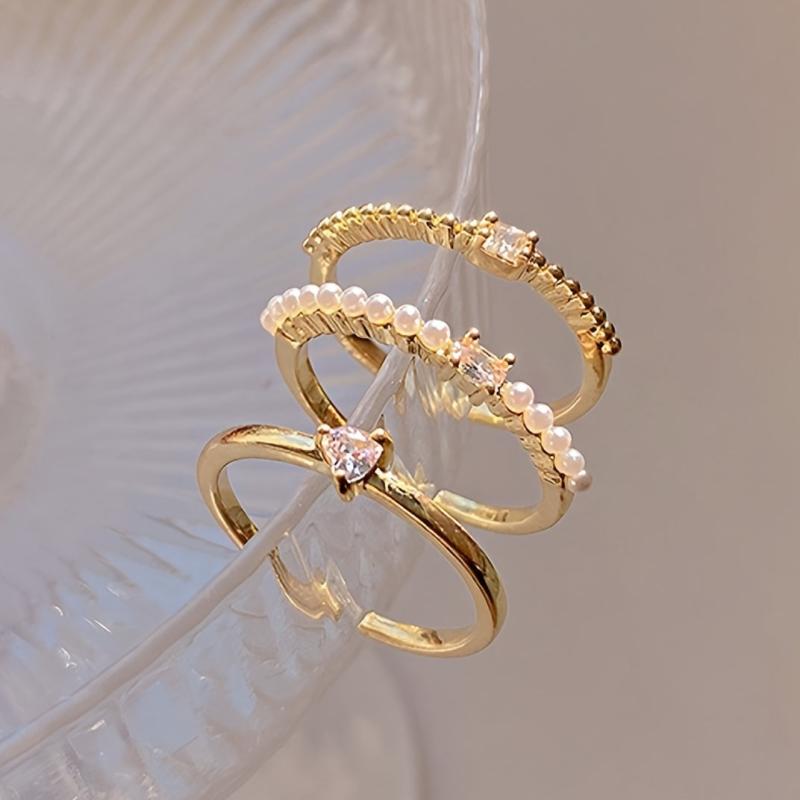 This set includes 3 rings, each with its own unique charm. Vintage style KC golden plated with combined vintage charm. Perfect for adding a touch of elegance to any outfit.