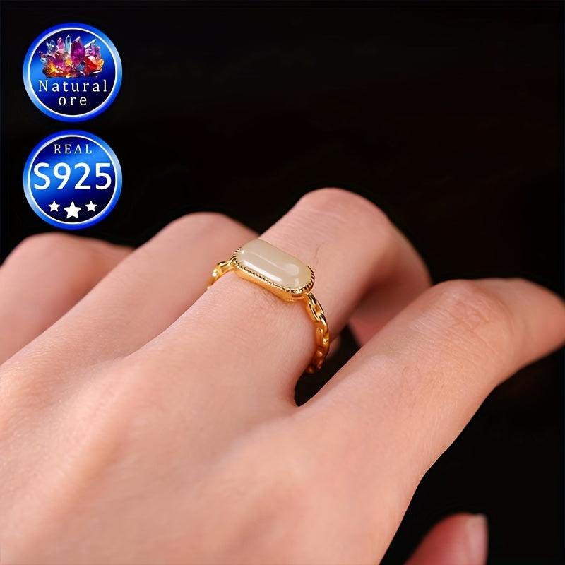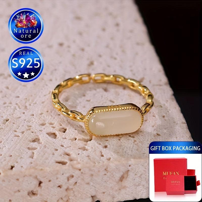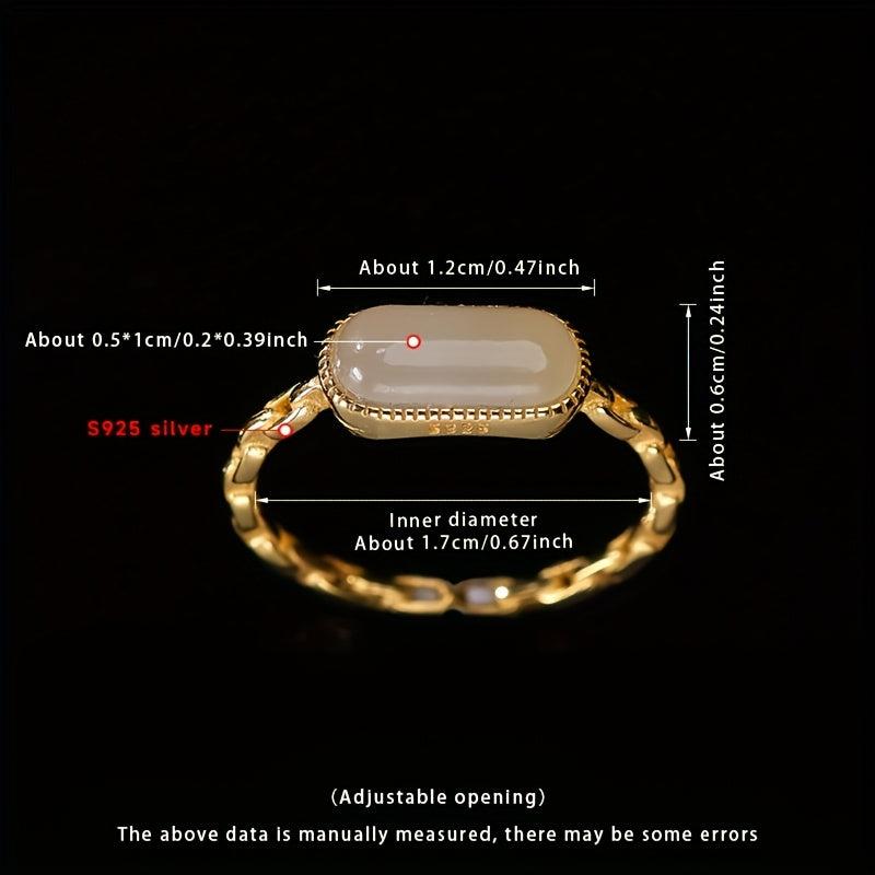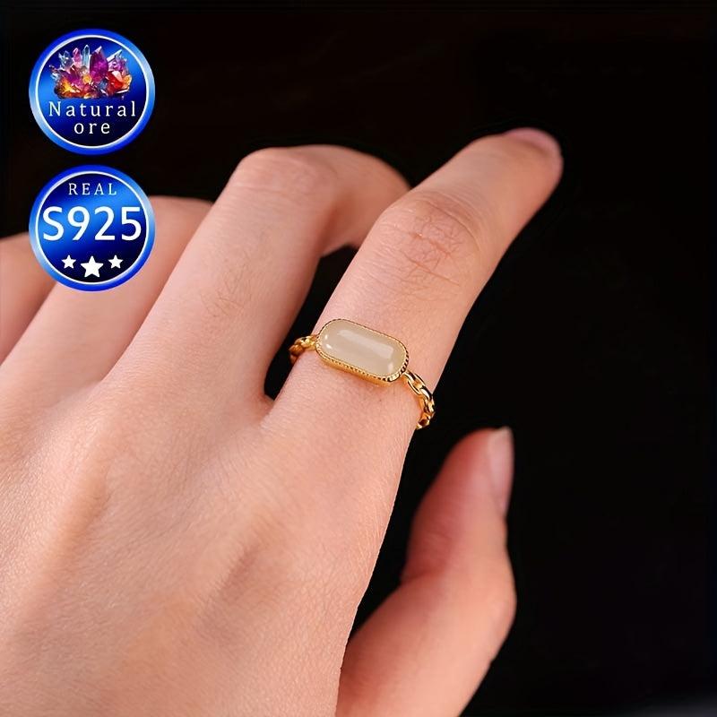 Vintage Style S925 Silver Adjustable Cuff Ring with Natural Stone 0.8g