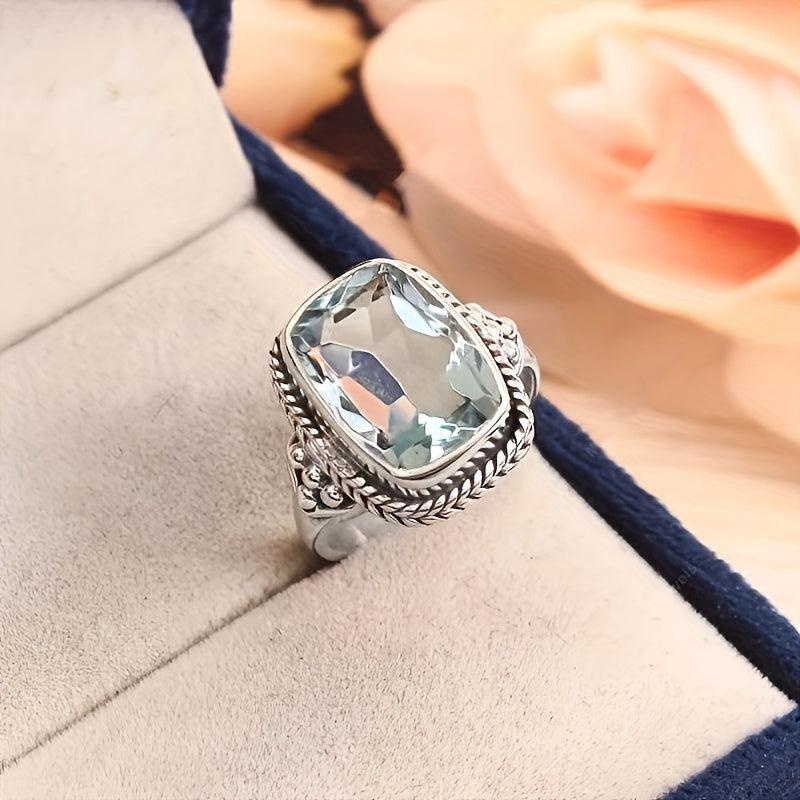Add a touch of vintage glamour to your look with this stunning statement ring featuring a rectangular synthetic cubic zirconia stone. Perfect for gift giving or as a chic accessory for your vacation or Earth celebration outfit.