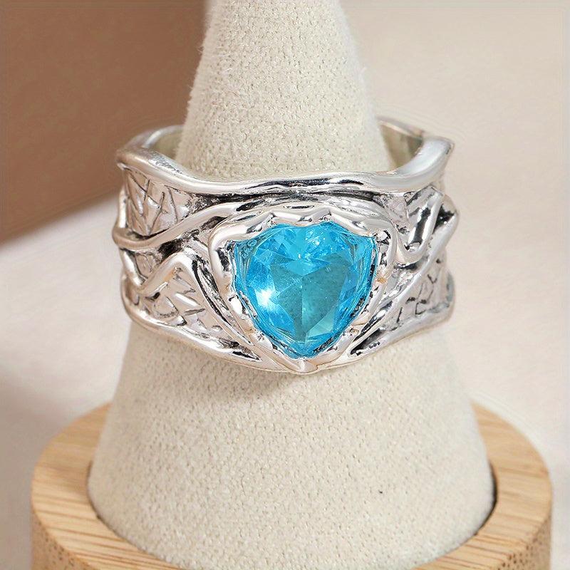 This vintage wide face ring features a love heart design with synthetic zirconia stones, making it a perfect accessory for brides, weddings, and parties. Add a touch of elegance to your outfit with this ethnic-inspired jewelry piece.