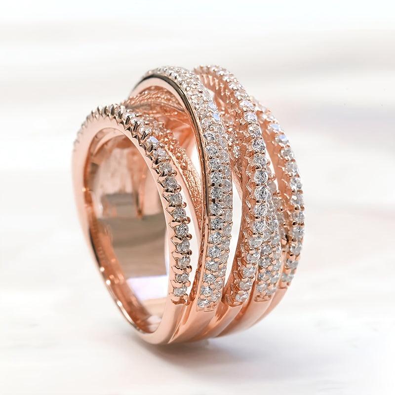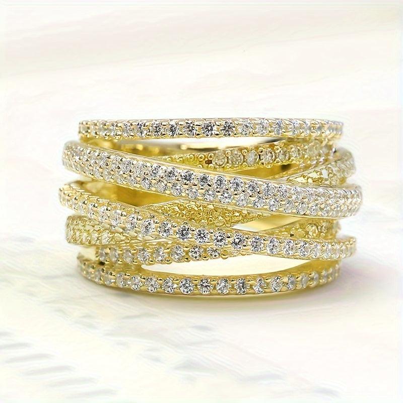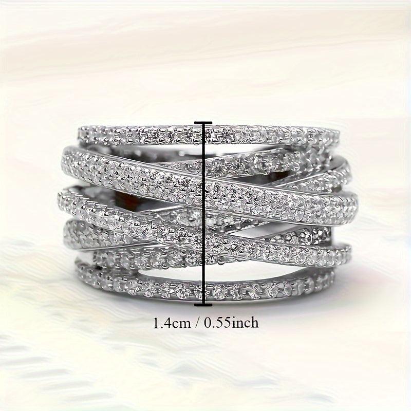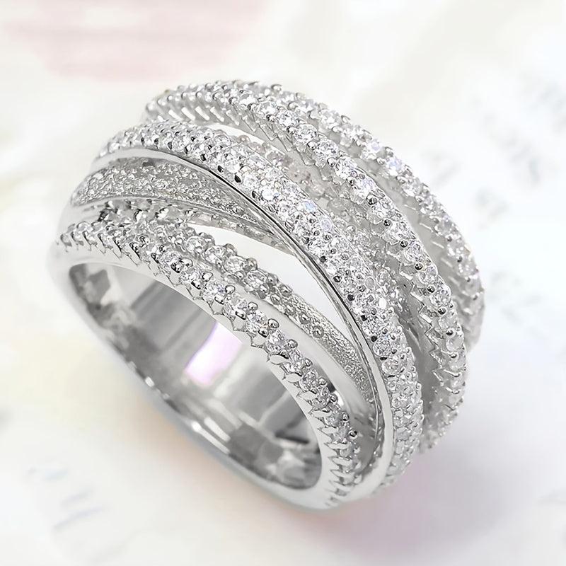 Elegantly designed wide band ring interwoven with sparkling zirconia, ideal for brides, banquets, daily wear, anniversaries, and expressing love.