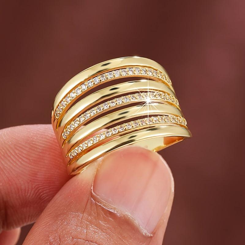 Elegant and stylish wide face ring featuring cubic zirconia stones in a golden plated setting. Perfect for daily wear or as a gift for a loved one.