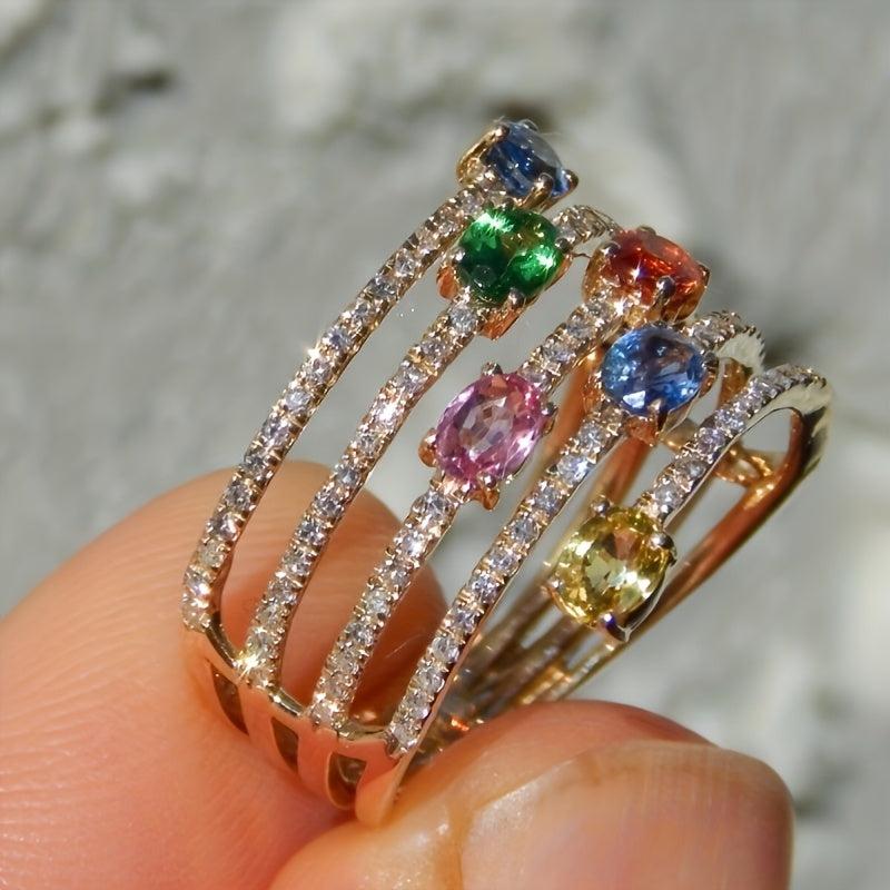 Elevate your style with this stunning wide face ring featuring colorful synthetic zirconia. Perfect for daily wear, parties, or holidays.