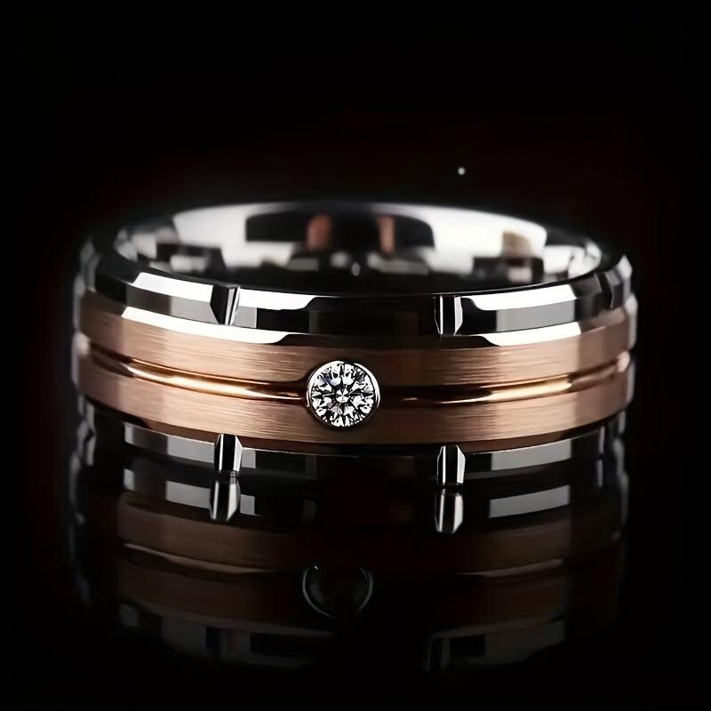 This wide ring features a titanium band with a shimmering zirconia inlay, perfect for everyday wear and suitable for all genders. Great as a couple's matching accessory.