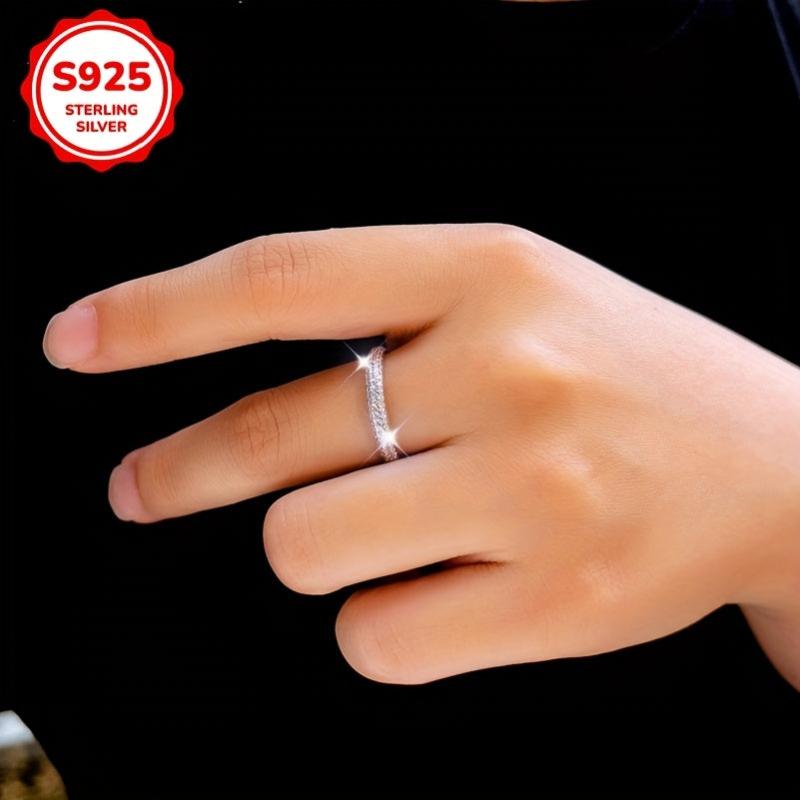 This 925 pure silver ring is adorned with synthetic Zirconia, making it perfect for engagement or wedding finger jewelry. It is low allergy and ideal for daily wear.