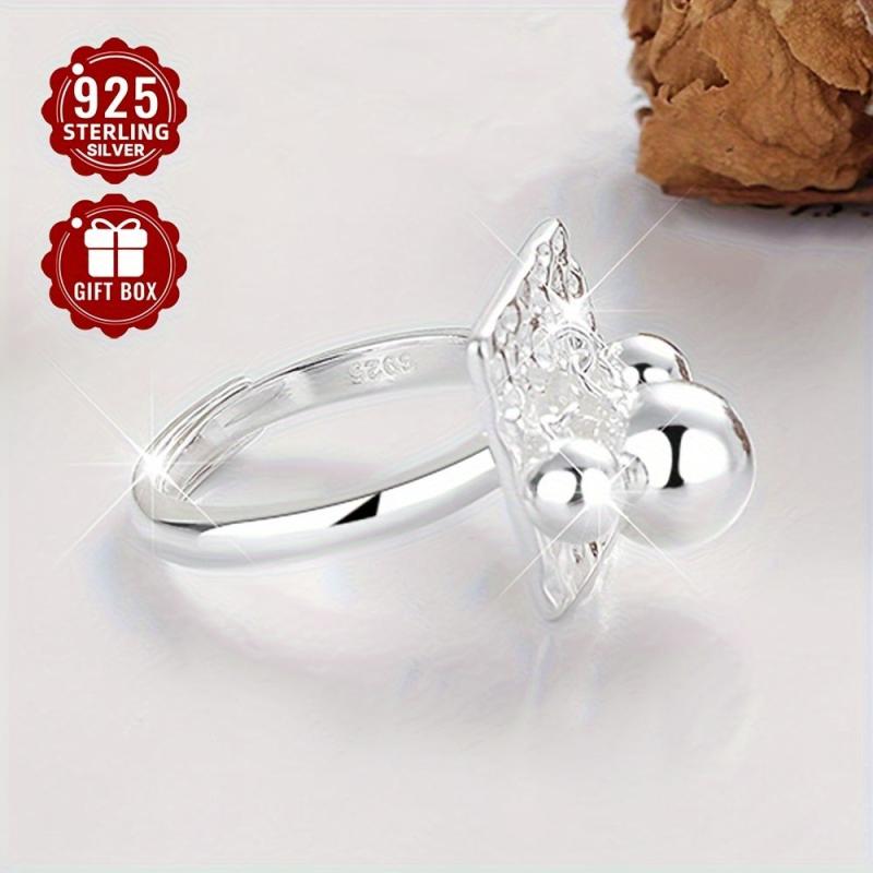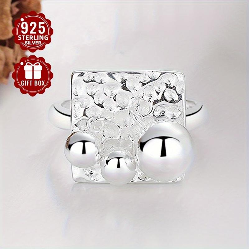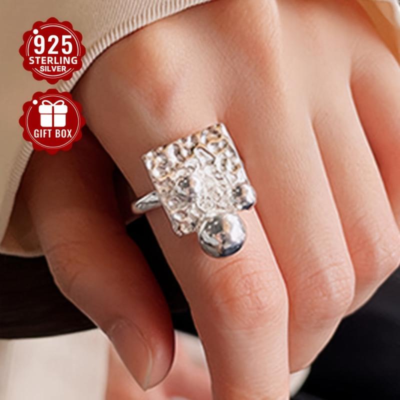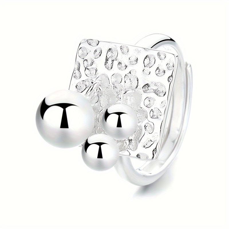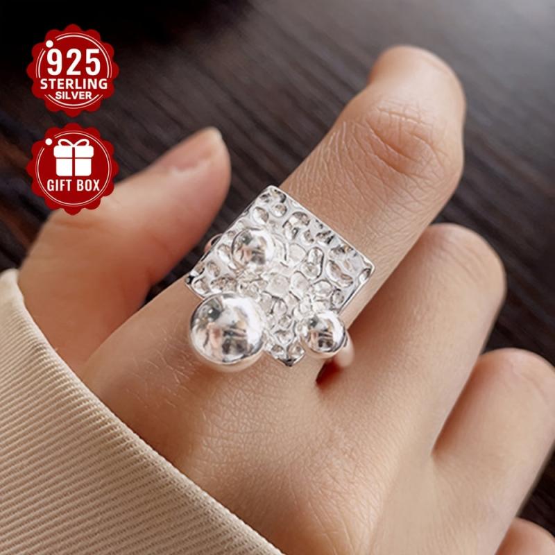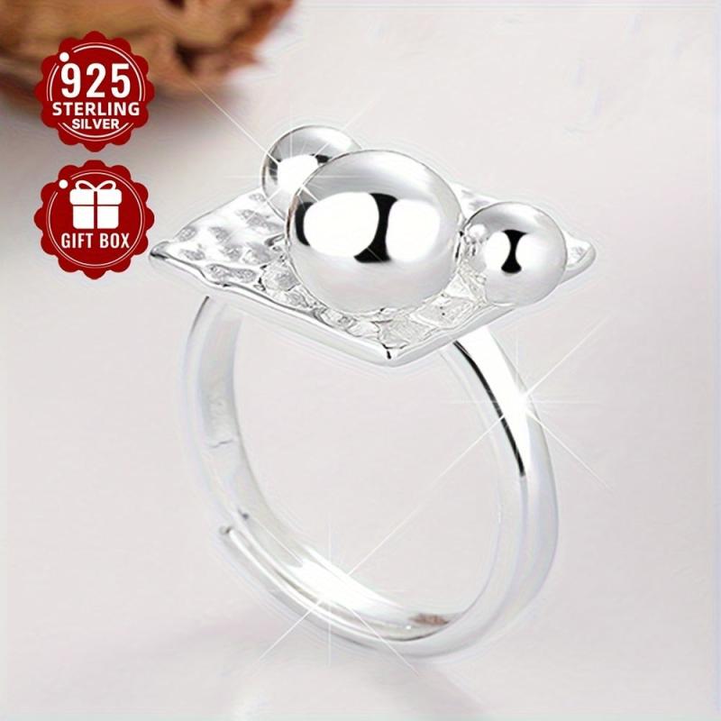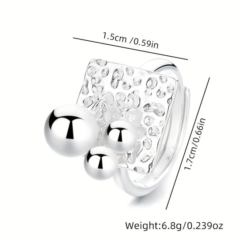 Women's 925 Sterling Silver Open Ring Wide Face Bubble Ball Round Ring