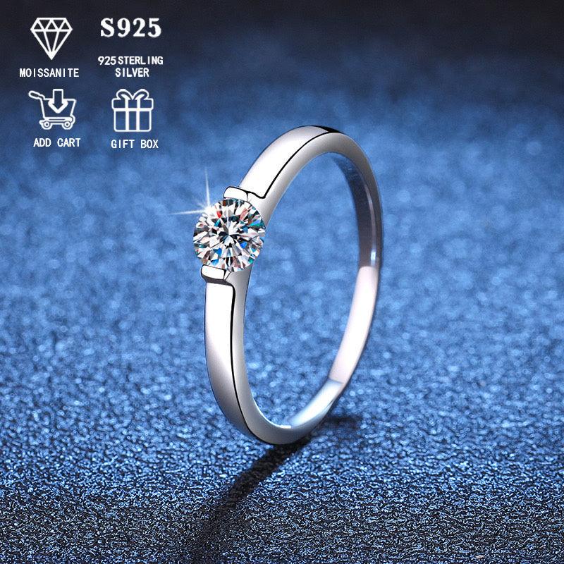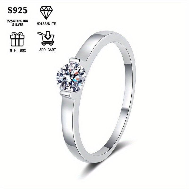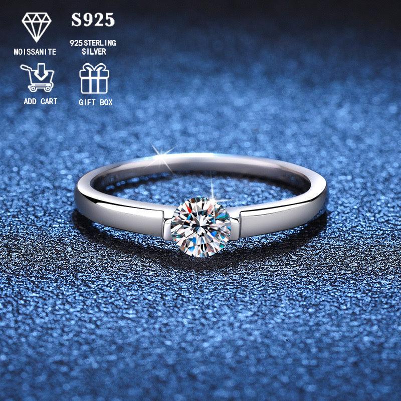 This classic anniversary ring features a 0.5ct Moissanite stone set in 925 silver plating. Perfect for all seasons and makes a great gift. Hypoallergenic and lightweight at only 1.8g. Sterling silver included for added durability.