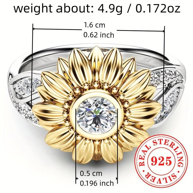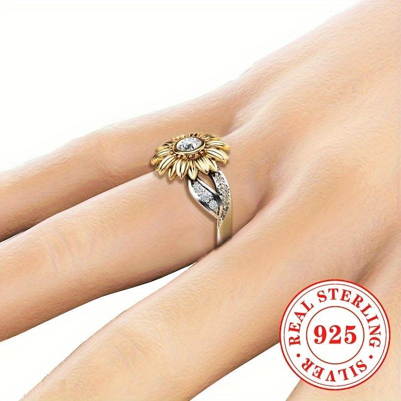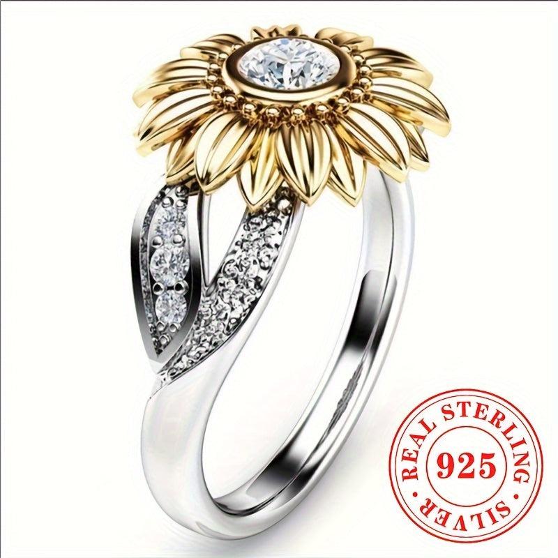 Women's Anniversary Ring S925 Silvery Two tone Flower Ring
