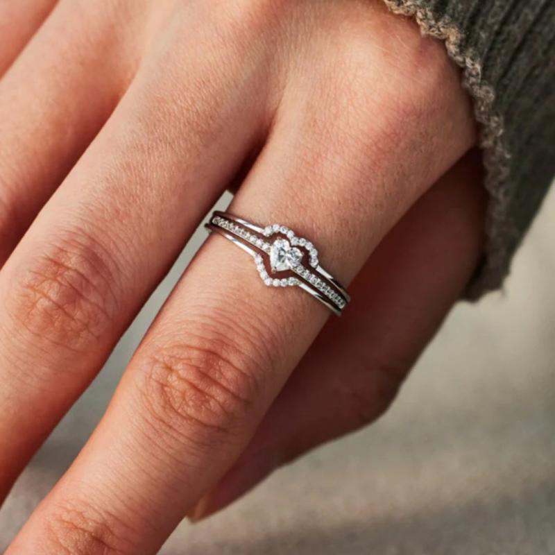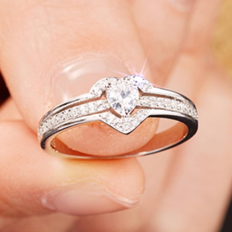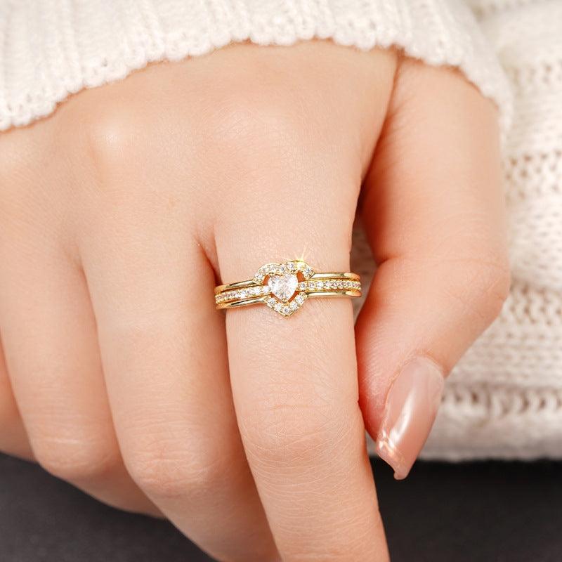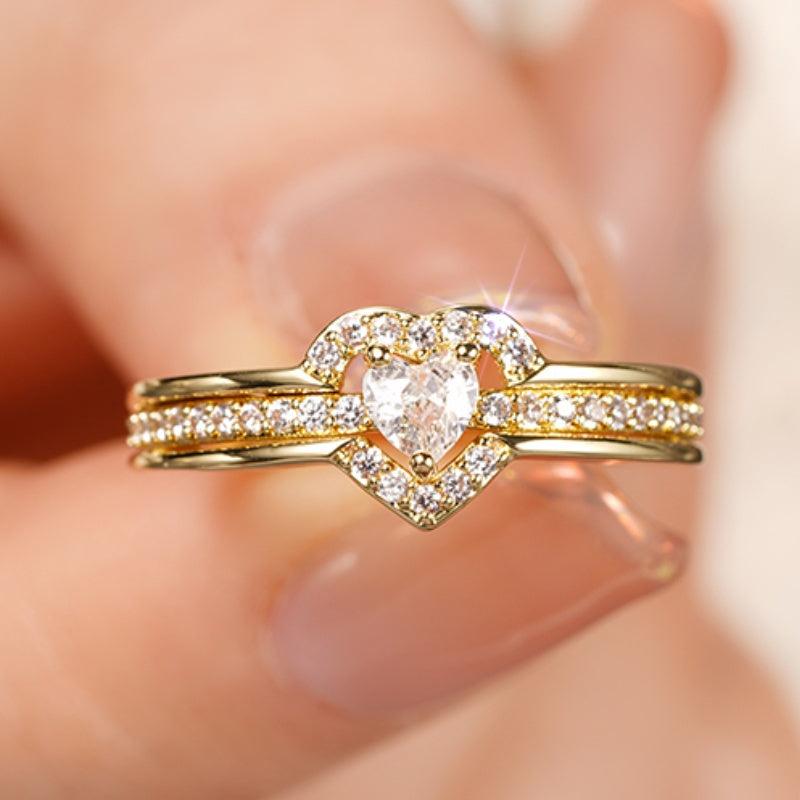 This stunning ring features a cluster of three heart-shaped synthetic zirconia stones, perfect for a proposal or as an April birthstone gift. The golden-plated band adds a touch of elegance to any outfit.