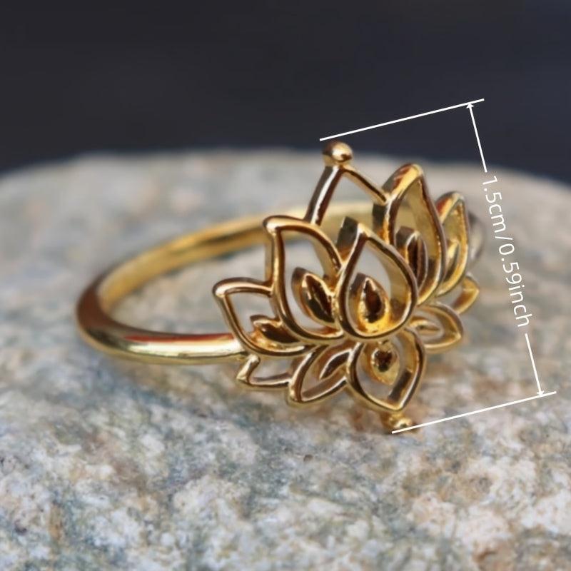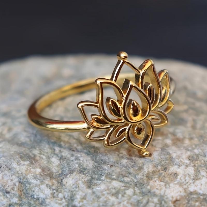 Elevate your style with this vintage-inspired lotus flower ring. Made of golden plated copper, this ring is perfect for meditation, yoga, casual wear, and parties.