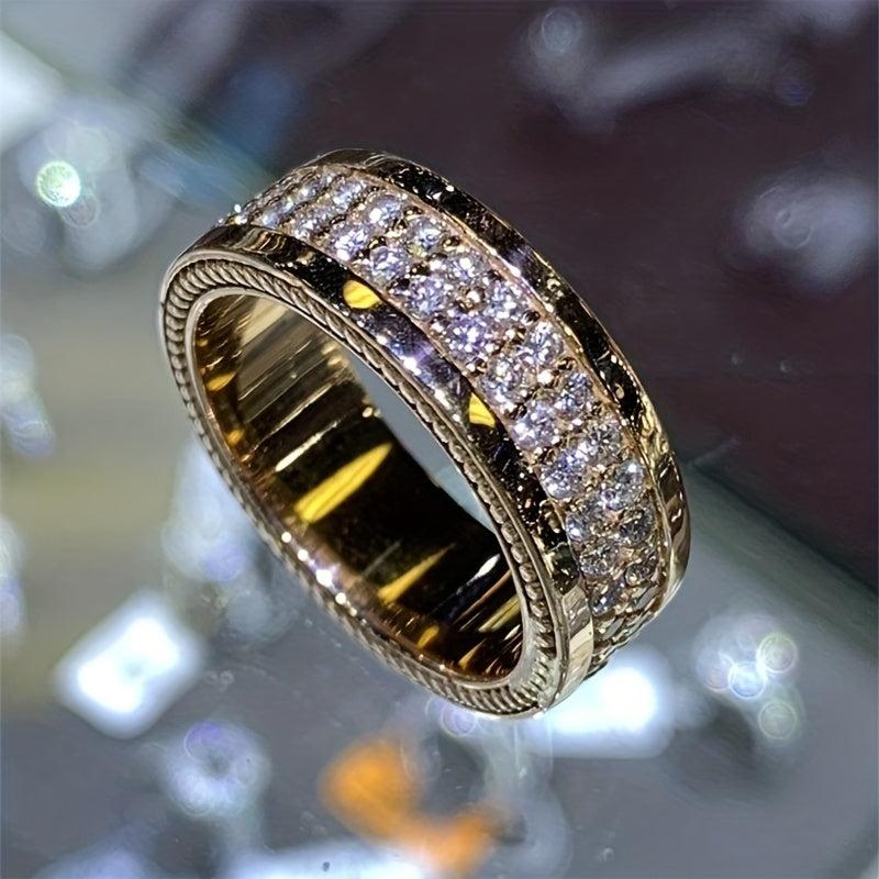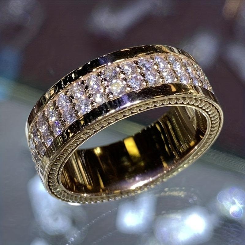 This stylish dual row synthetic cubic zirconia ring is perfect for any season. Made with a copper band and round CZ stones, it's a great anniversary gift.