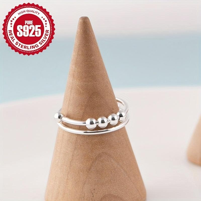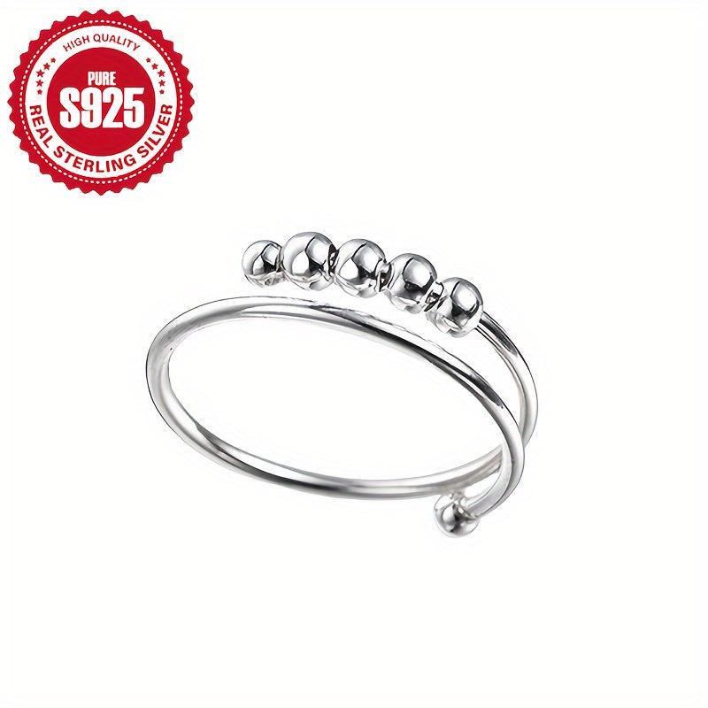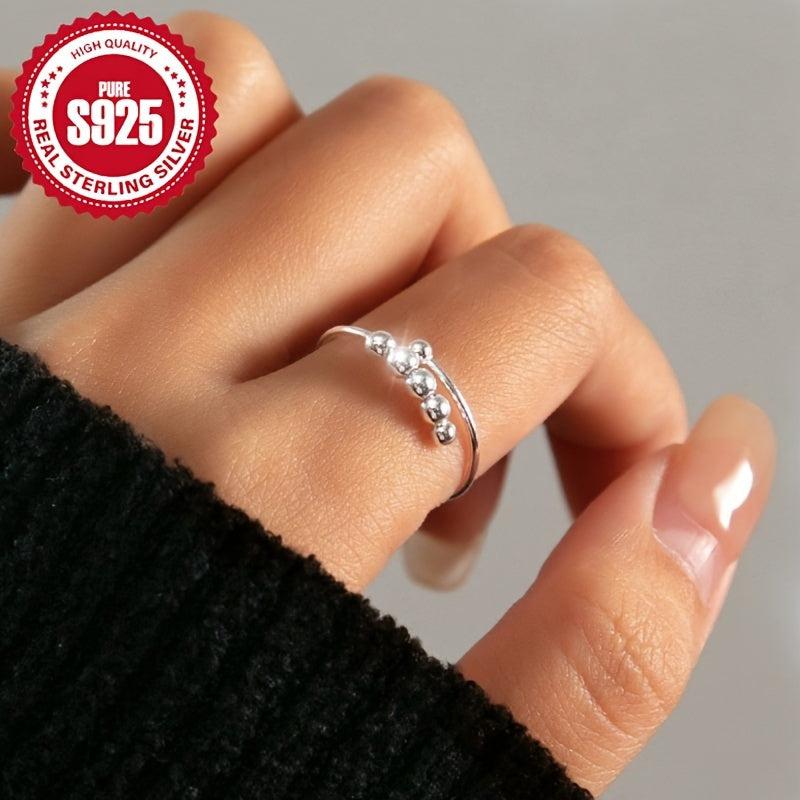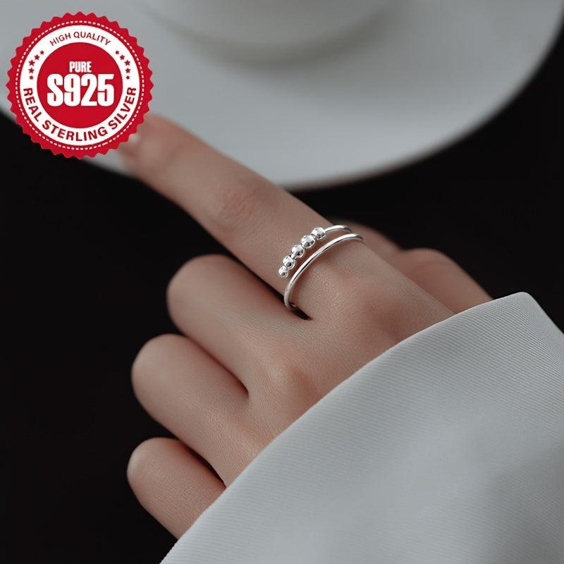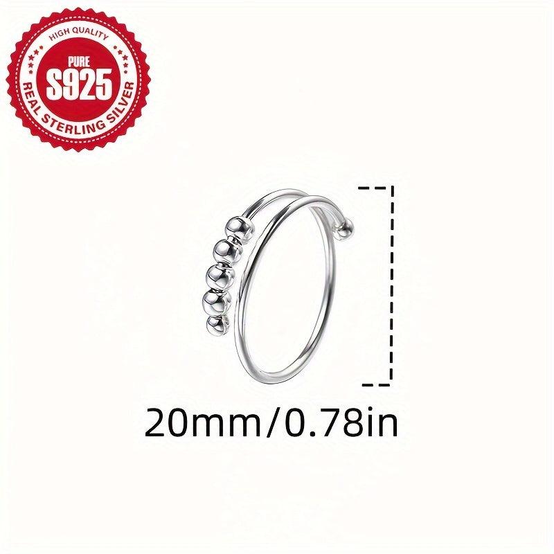 This open cuff ring features a double layer bead spiral design, crafted from high-quality 925 sterling silver. It offers an adjustable fit and is hypoallergenic, suitable for all-season wear.