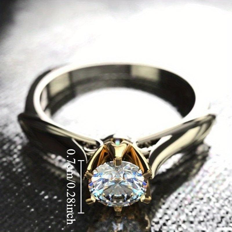 This classic engagement ring features a single synthetic cubic zirconia stone set in a two-tone copper band. Perfect for all seasons and makes a great gift for loved ones born in April.