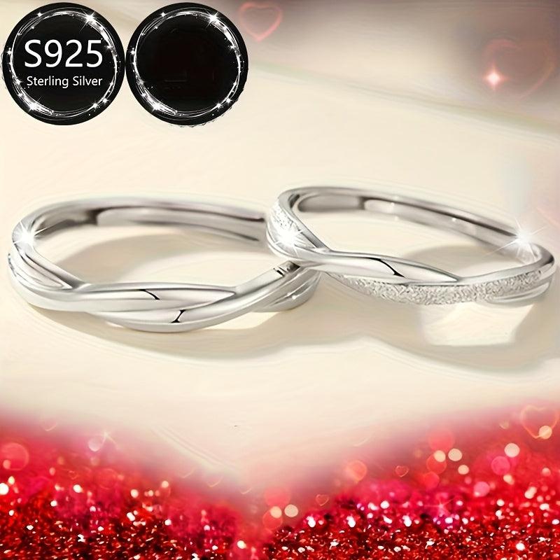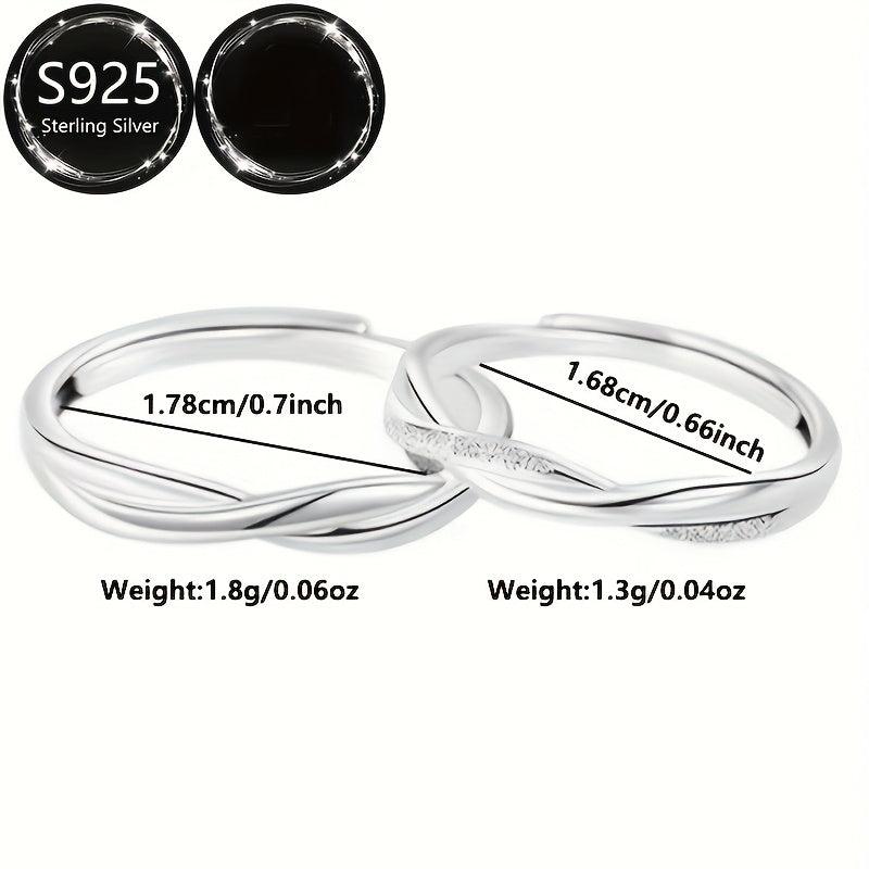 Express your love with this pair of adjustable open rings crafted in 925 silver. Comes in a heart-shaped box, perfect for gifting to your girlfriend as a confession of your infinite love.