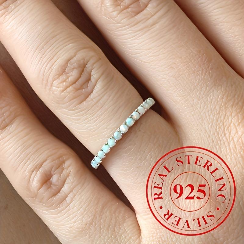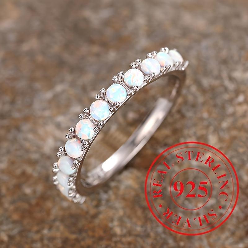 This elegant ring is set with a synthetic Australian Opal, making it a perfect choice for engagement and wedding ceremonies. Crafted from S925 pure silver, it offers a timeless look that will dazzle on any occasion.