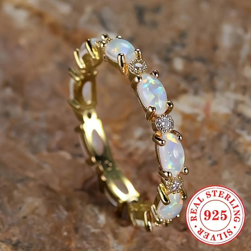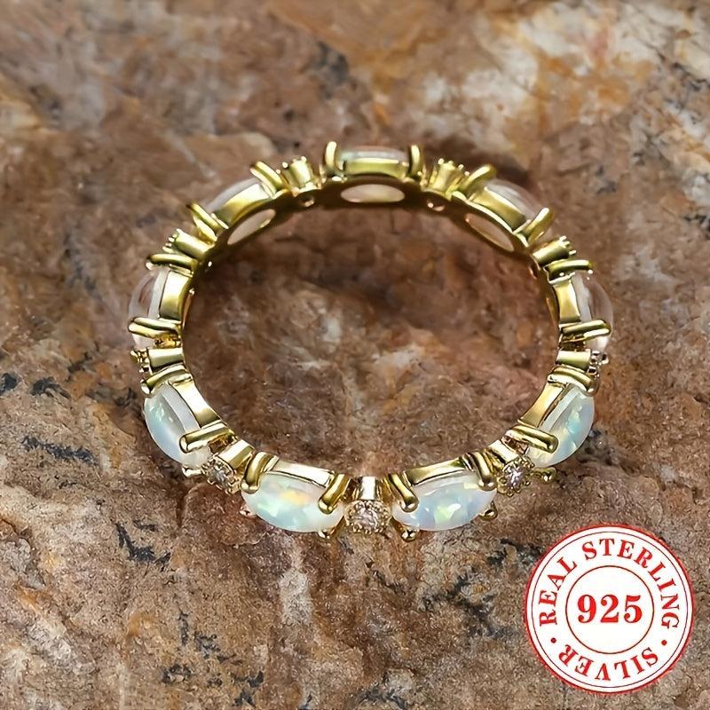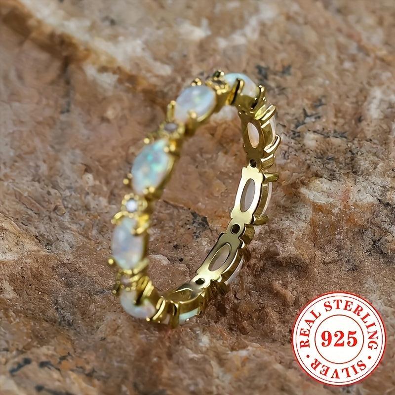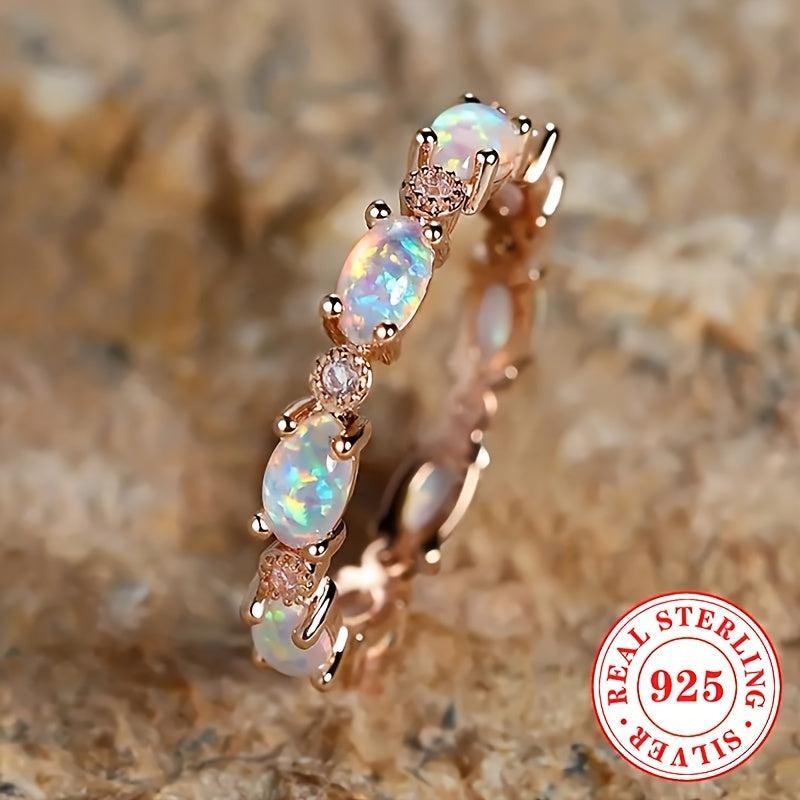 Women's Eternal Ring S925 Silvery Synthetic Opal Ring for Ladies Gift