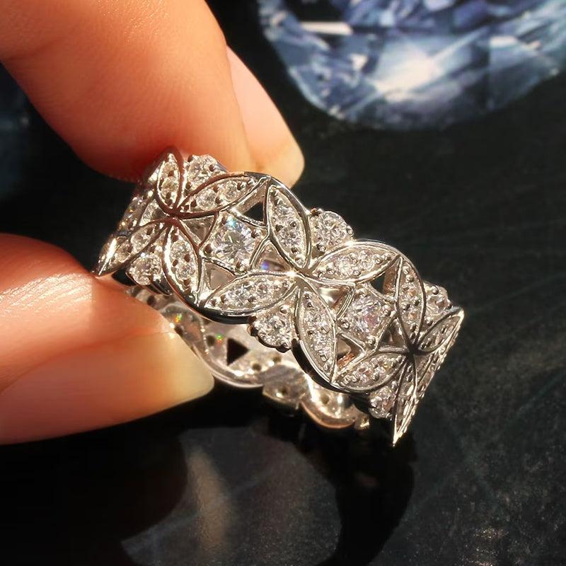 Add sparkle to your look with this elegant Women's Eternity Ring featuring a hollow leaf design with Cubic Zirconia inlay. Perfect for weddings, parties, or as a birthstone ring for April birthdays.