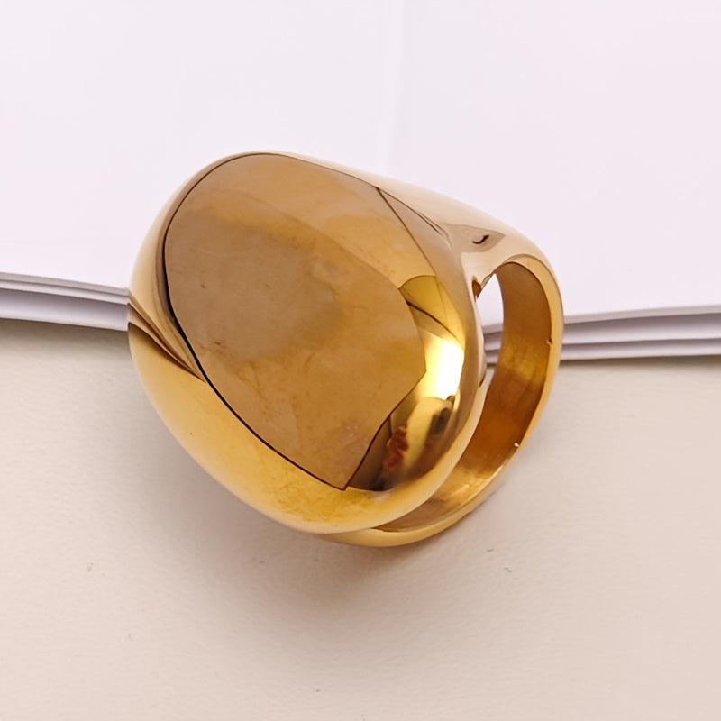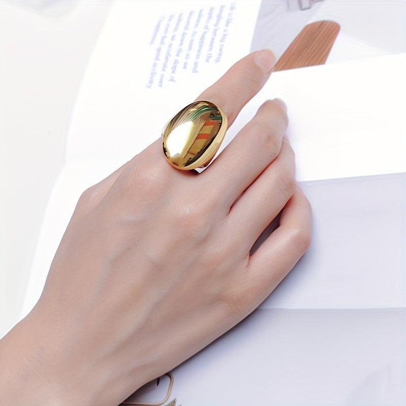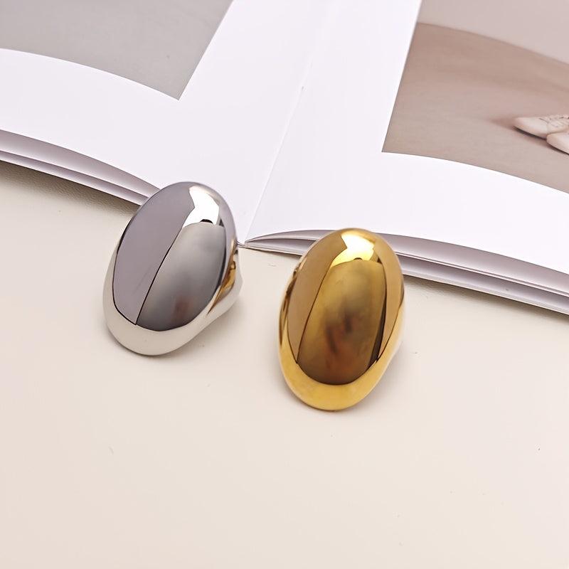 This unique ring features an exaggerated oval shape design with a glossy finish. Made of high-quality stainless steel material, the ring is available in golden or silvery colors. Elevate your look with this chic and trendy piece of jewelry.