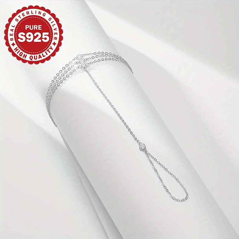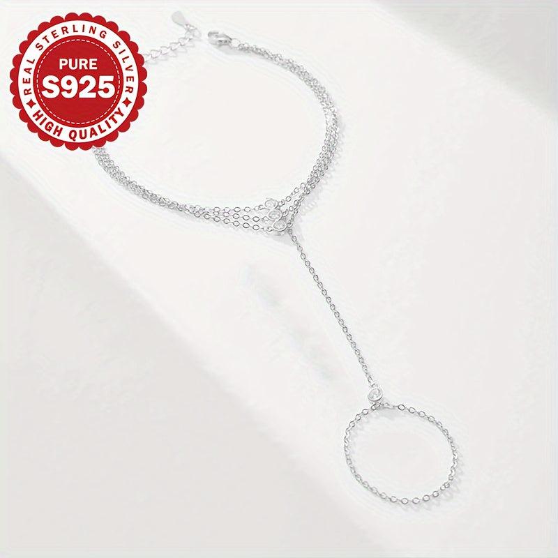 This elegant finger chain features three layers of linked S925 pure silver with synthetic zircon. It is suitable for all seasons and makes a lovely gift. The chain is lightweight and low in allergy potential.