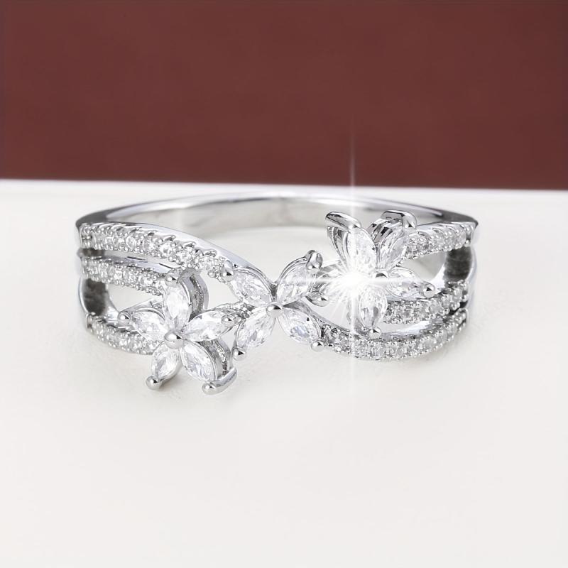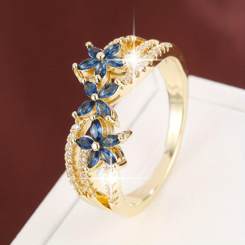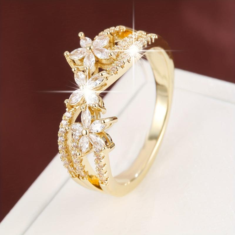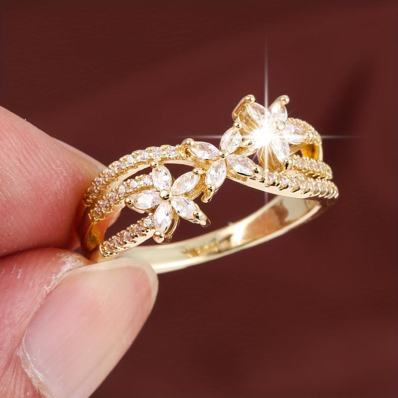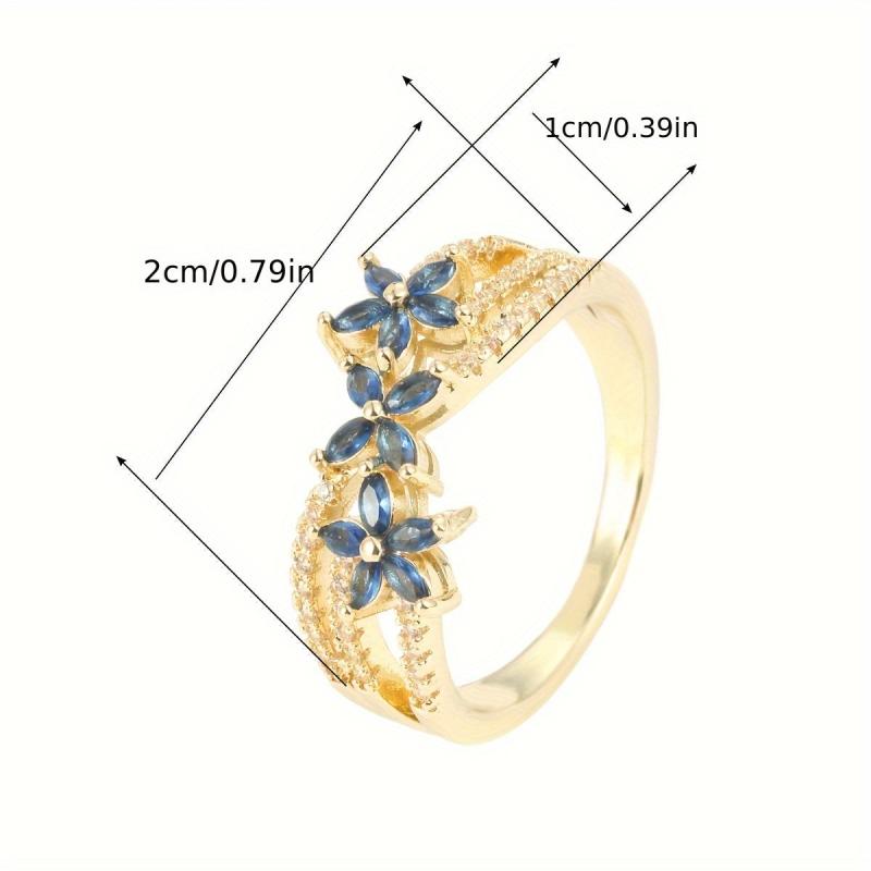 Elevate your casual attire with this three-ring set featuring floral and geometric designs accented by sparkling zirconia stones. Ideal for gift giving, these rings are golden plated for a luxurious look.