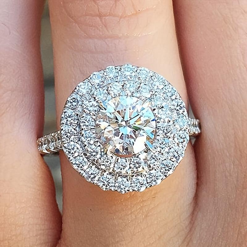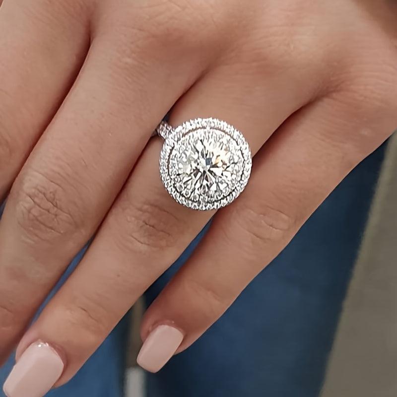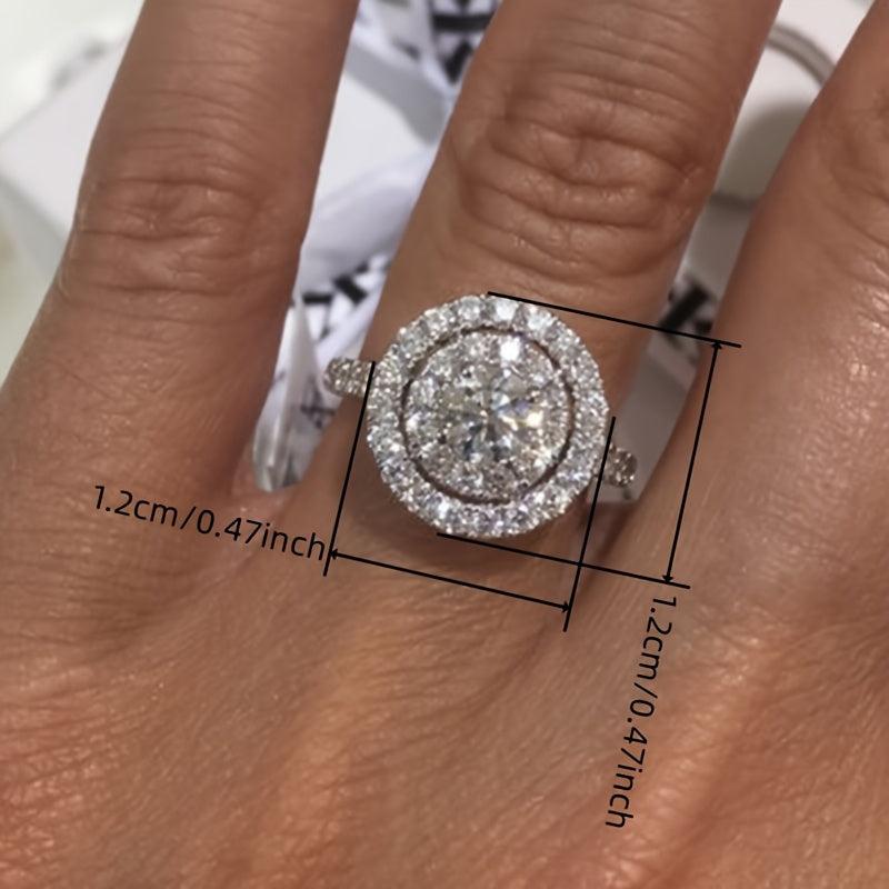 This gorgeous engagement ring features a round synthetic zirconia stone set in a four-prong setting. Perfect for weddings, banquets, or as a romantic gift.