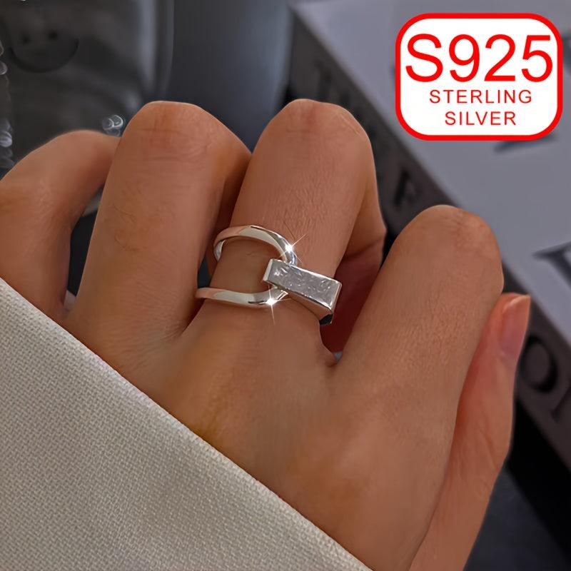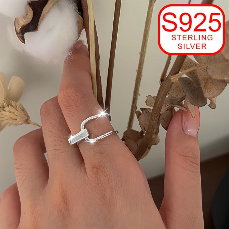 This stylish open ring features a geometric line design, perfect for adding a modern touch to your outfit. Made of S925 silver, it is ideal for daily wear or as a gift for weddings and special occasions.