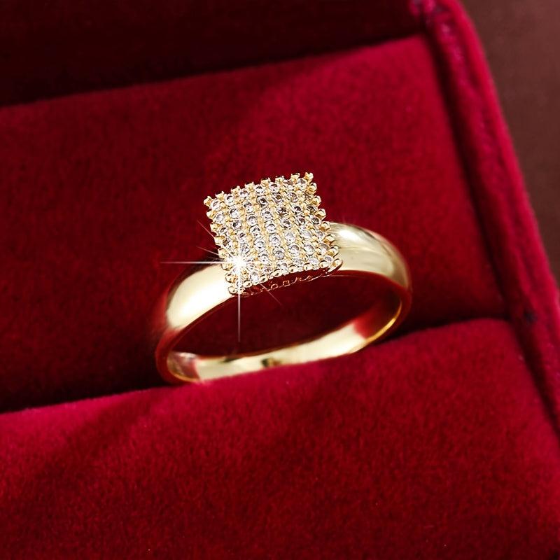 This elegant geometric square engagement ring features synthetic zircon stones and is made of copper plated with K. It is a versatile accessory suitable for all seasons.