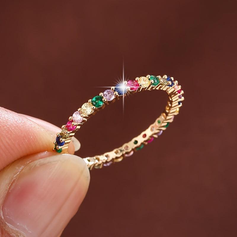 Add a touch of elegance to your look with this geometric ring featuring artificial zirconia. Perfect for everyday wear or special occasions.