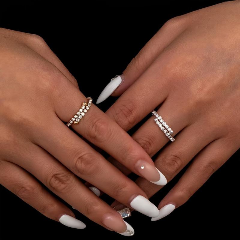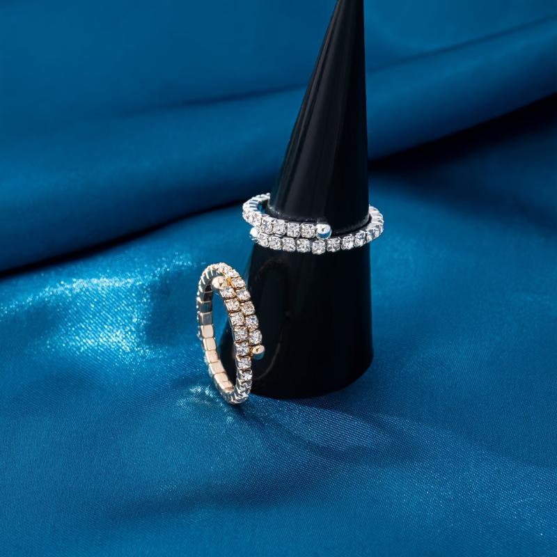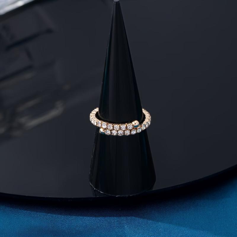 Add a touch of elegance to your look with this stunning open glass spiral ring. The golden tone accents make this ring perfect for parties and casual attire. The adjustable stretch band ensures a comfortable fit, while the high-quality glass construction makes it durable and long-lasting.