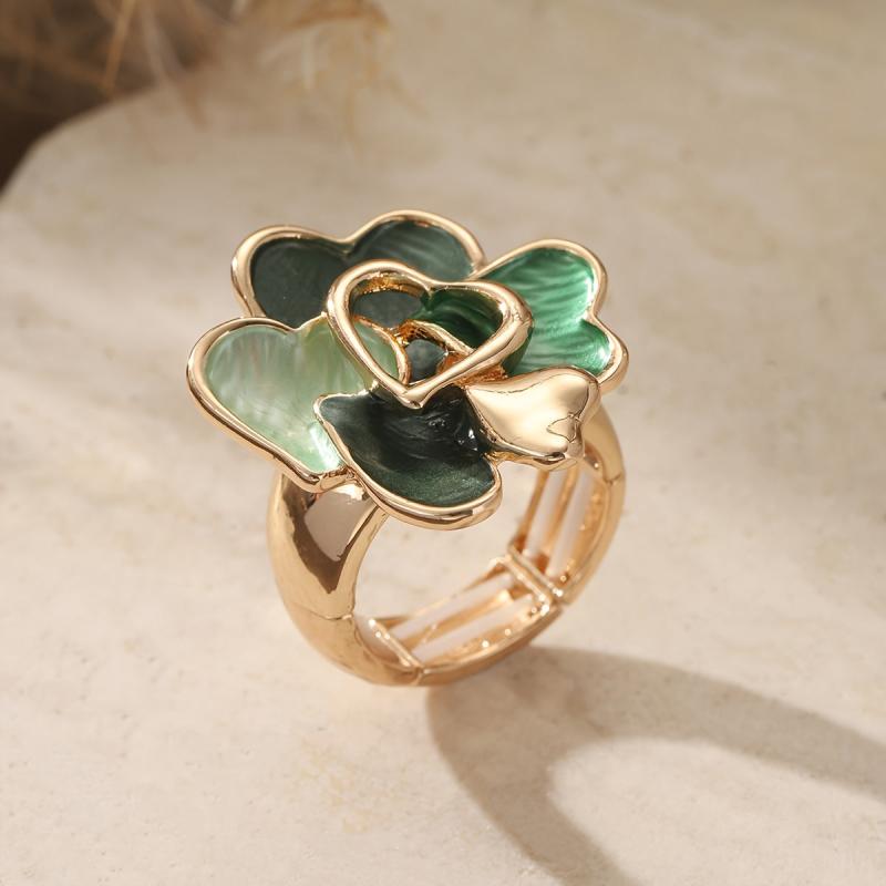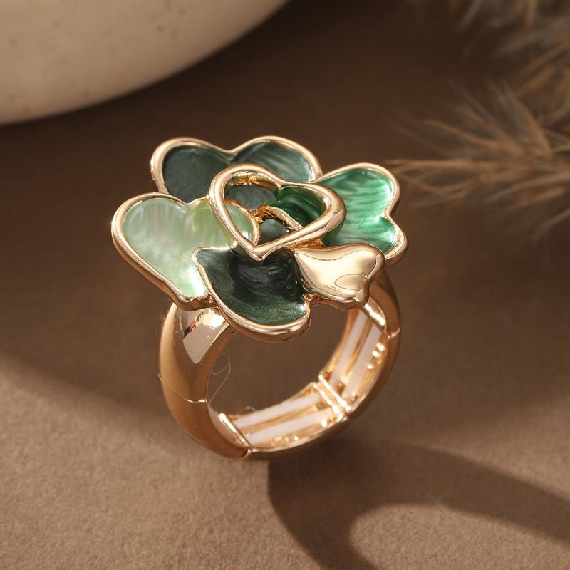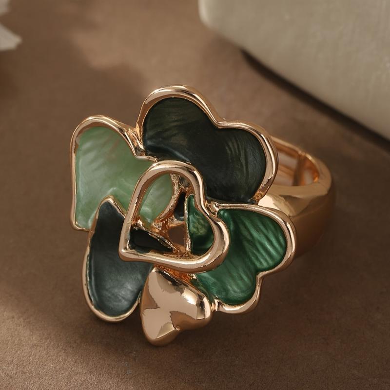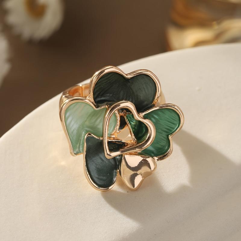 This zinc alloy ring features a green heart and drop design, perfect for anniversaries, Valentine's, and spring/summer jewelry.