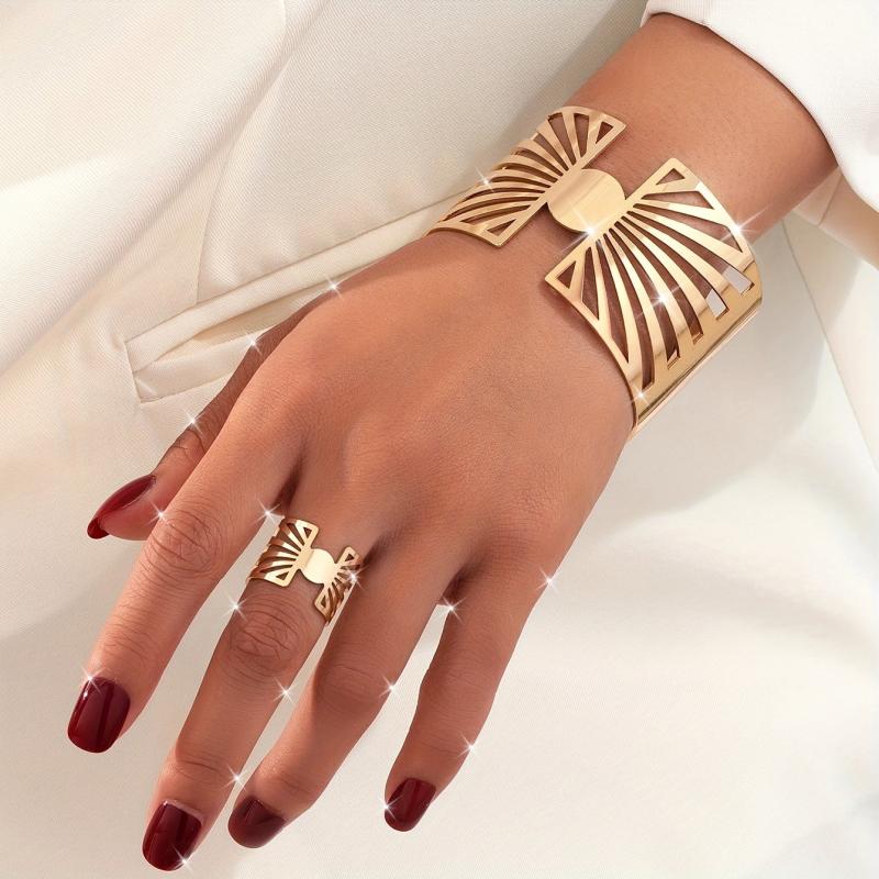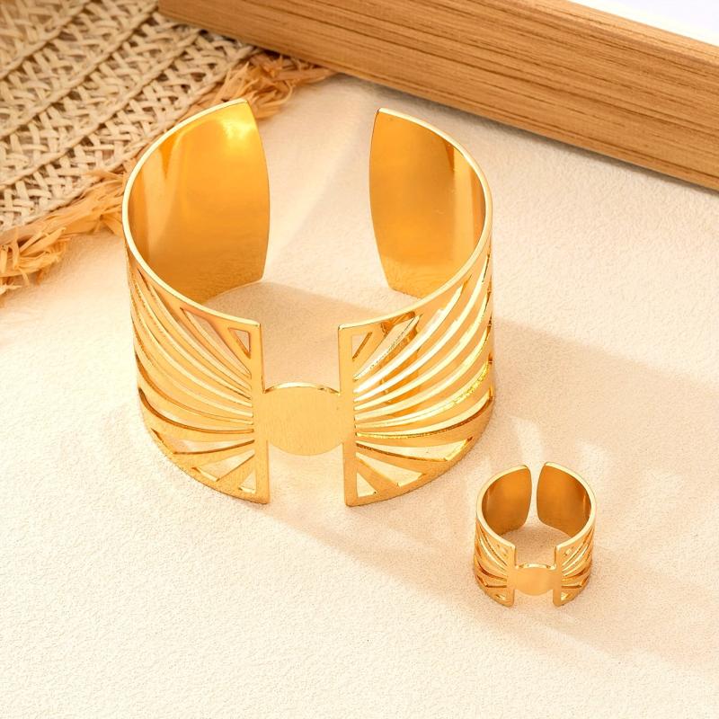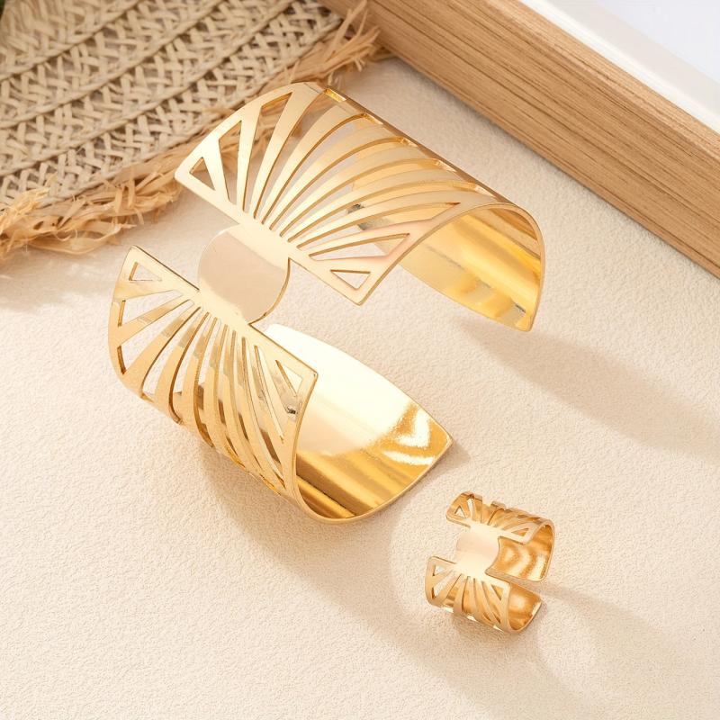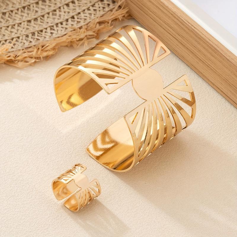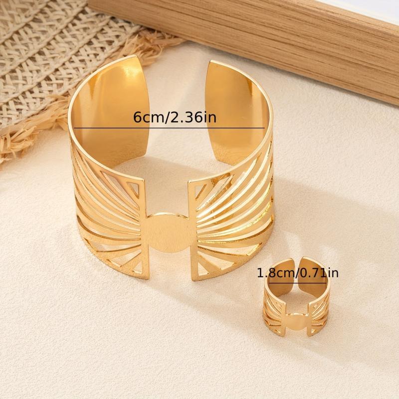Elegant and stylish hollow golden bracelet ring set perfect for daily wear or special occasions. Makes a great gift for women who love trendy jewelry.