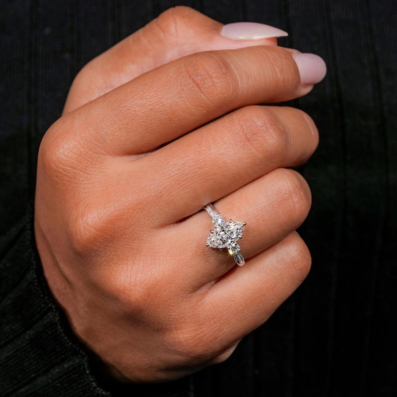This marquise cut ring is made of 925 sterling silver with CZ stones. It is lightweight and hypoallergenic, suitable for everyday wear.