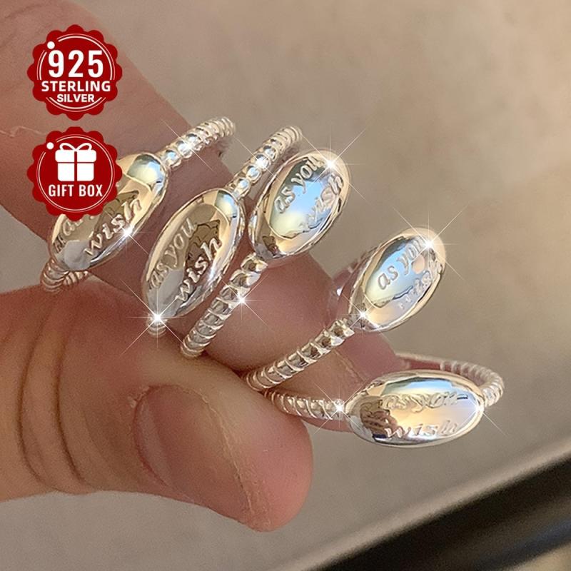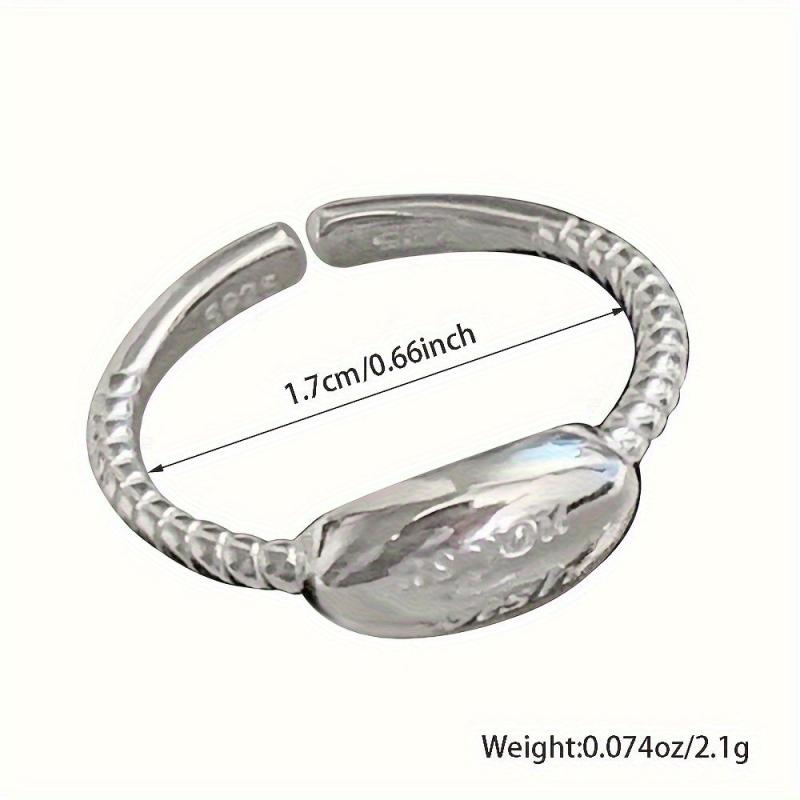 This open ring features an oval design with a letter detail, made of 925 pure silver. It is adjustable and suitable for daily outings and parties. Perfect for gift giving.