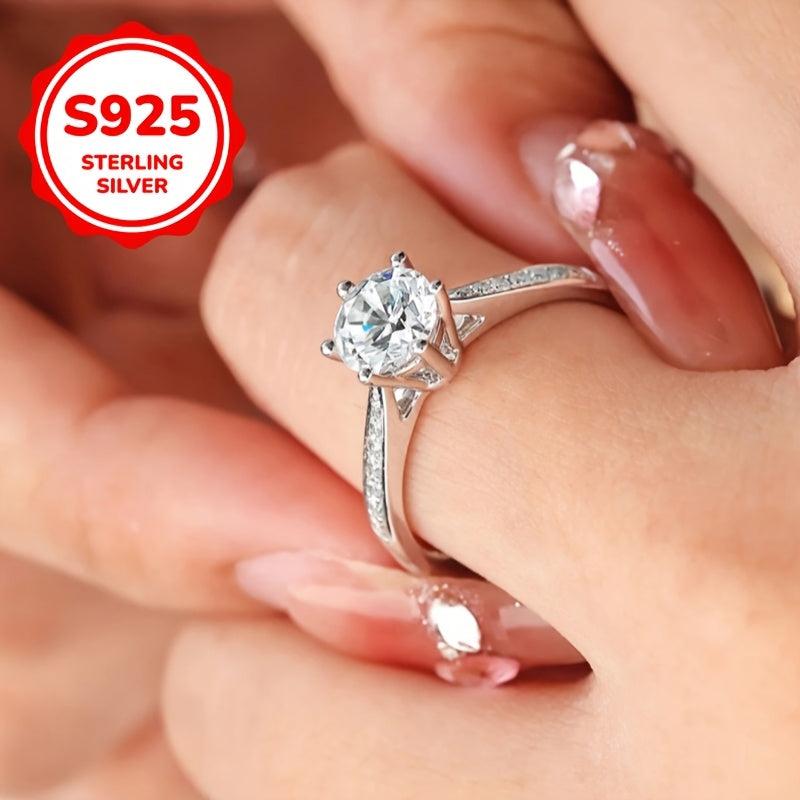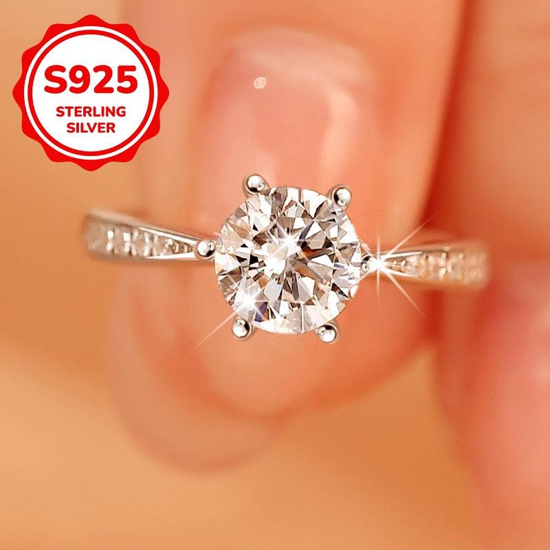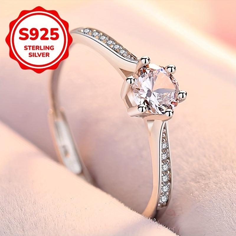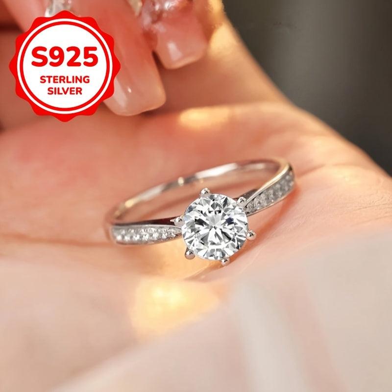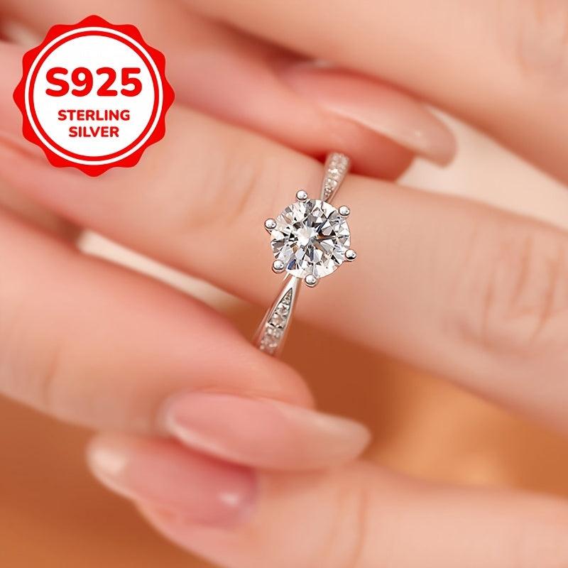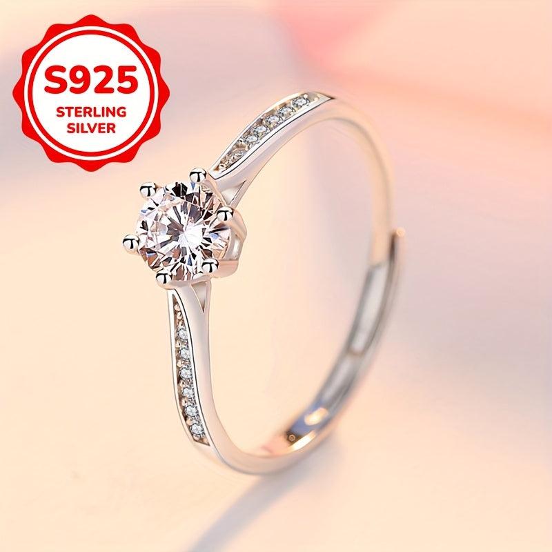 This stunning open ring features six prong-set synthetic zirconia on a S925 silver band. It's perfect for mothers, weddings, and everyday wear.