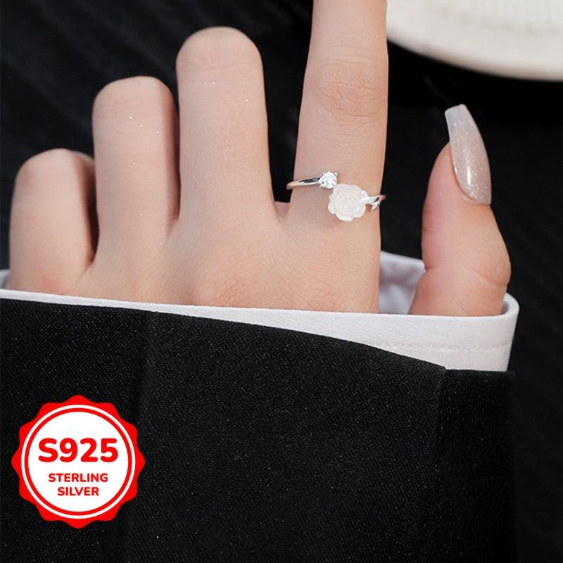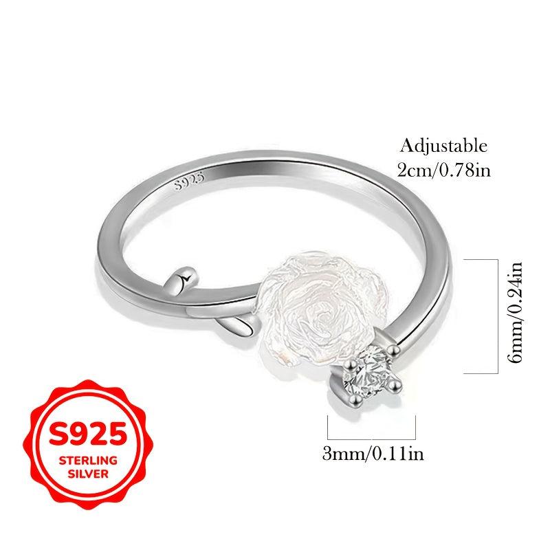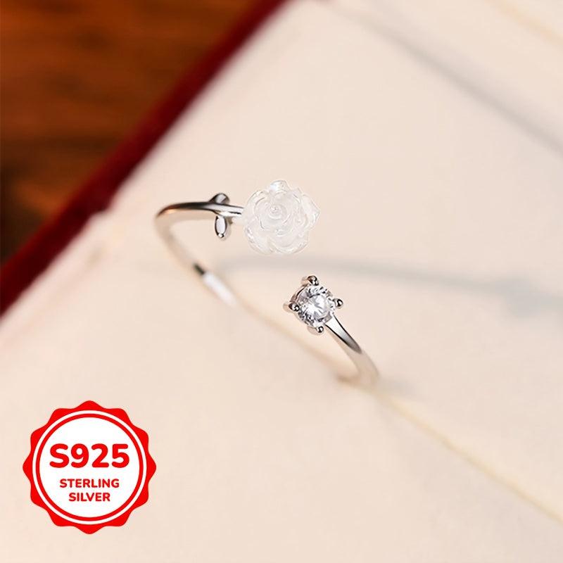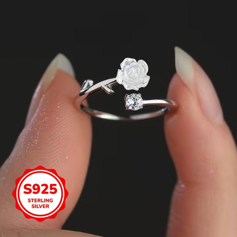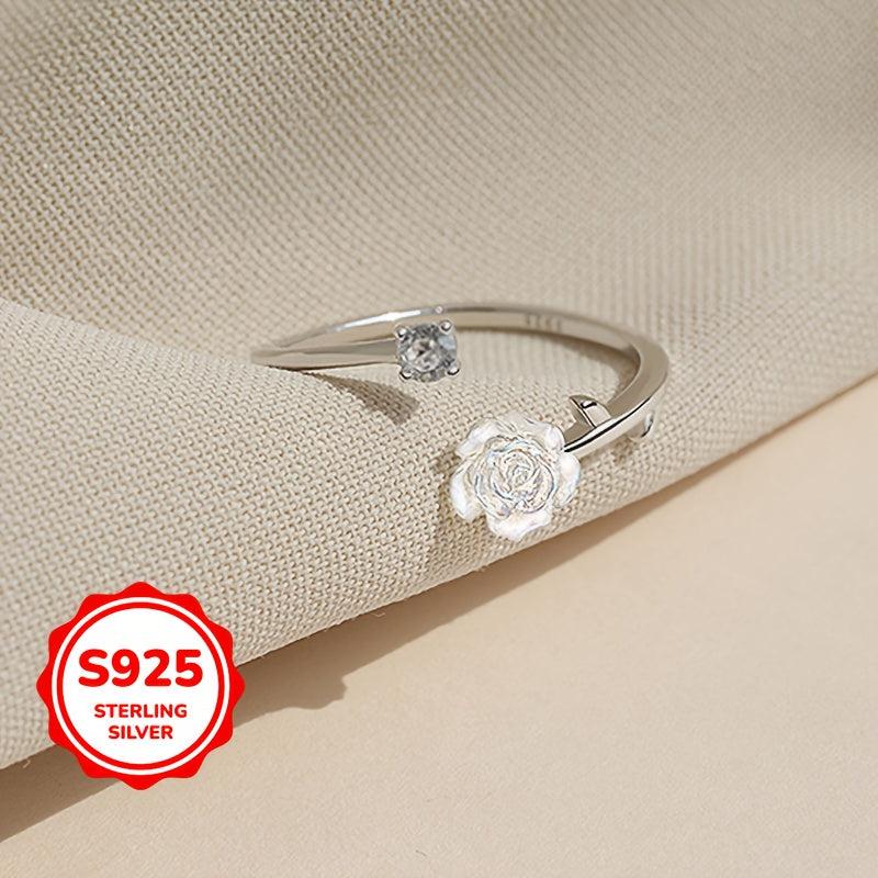This stunning open ring features a rose design with synthetic zirconia accents. Made of high-quality S925 sterling silver, it is lightweight and perfect for casual wear.