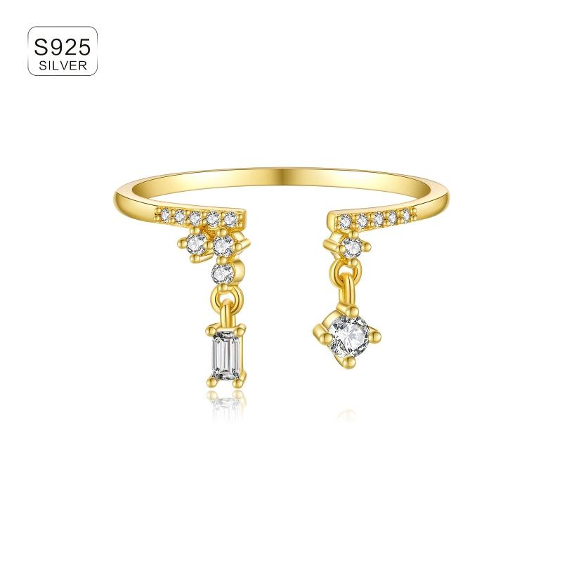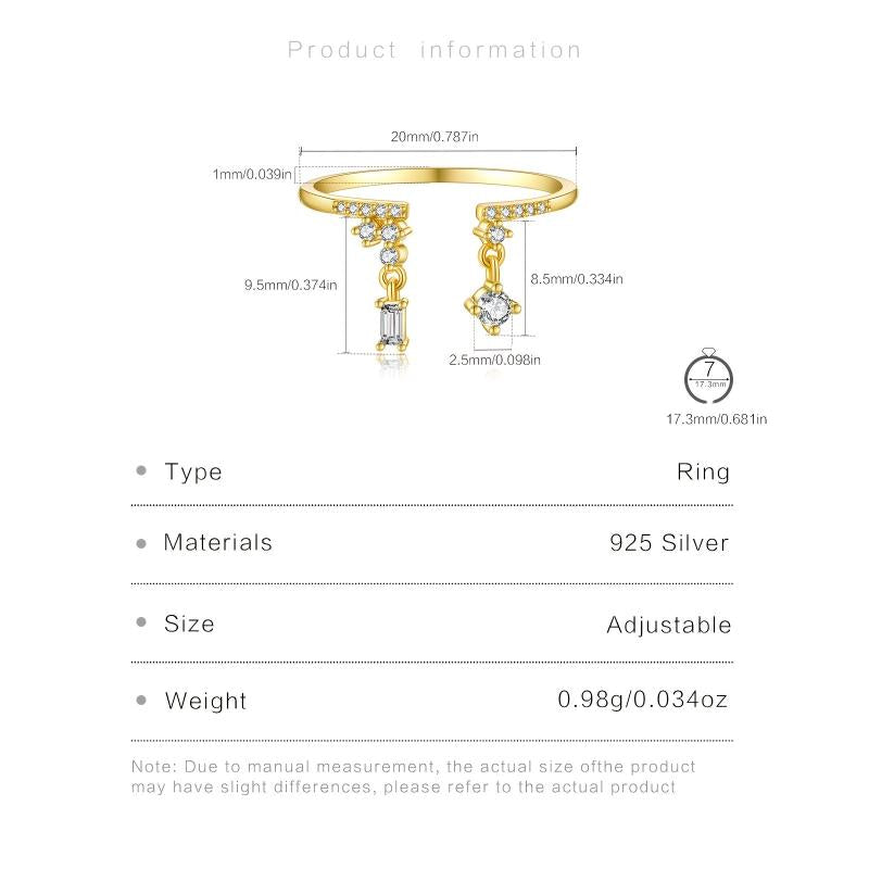 Add a touch of elegance to your look with this stunning women's open ring featuring synthetic zirconia stones. Made from 925 silver with an 18K gold plating, this ring is perfect for St. Patrick's Day or any special anniversary.