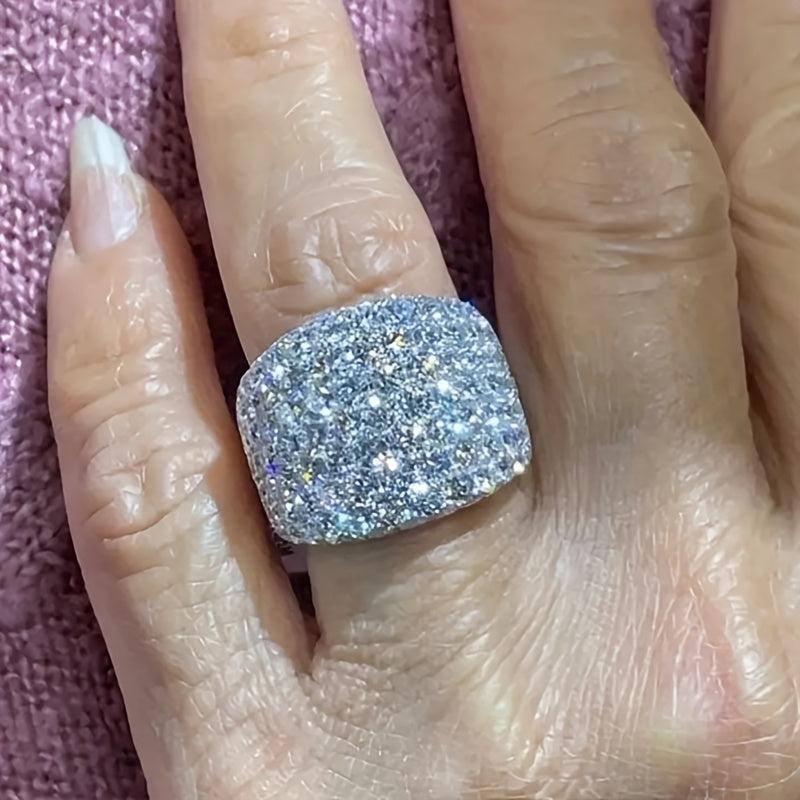 Elevate your style with this stunning ring adorned with pave set synthetic zirconia. Perfect for parties, daily commutes, and formal events.