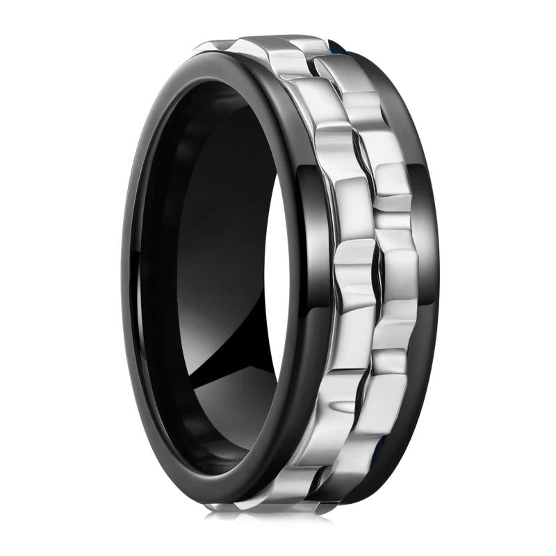 Enhance your party look with this wide band ring featuring a rotating fidget spinner design. Perfect for all seasons, this rock biker jewelry piece adds a touch of edgy style.