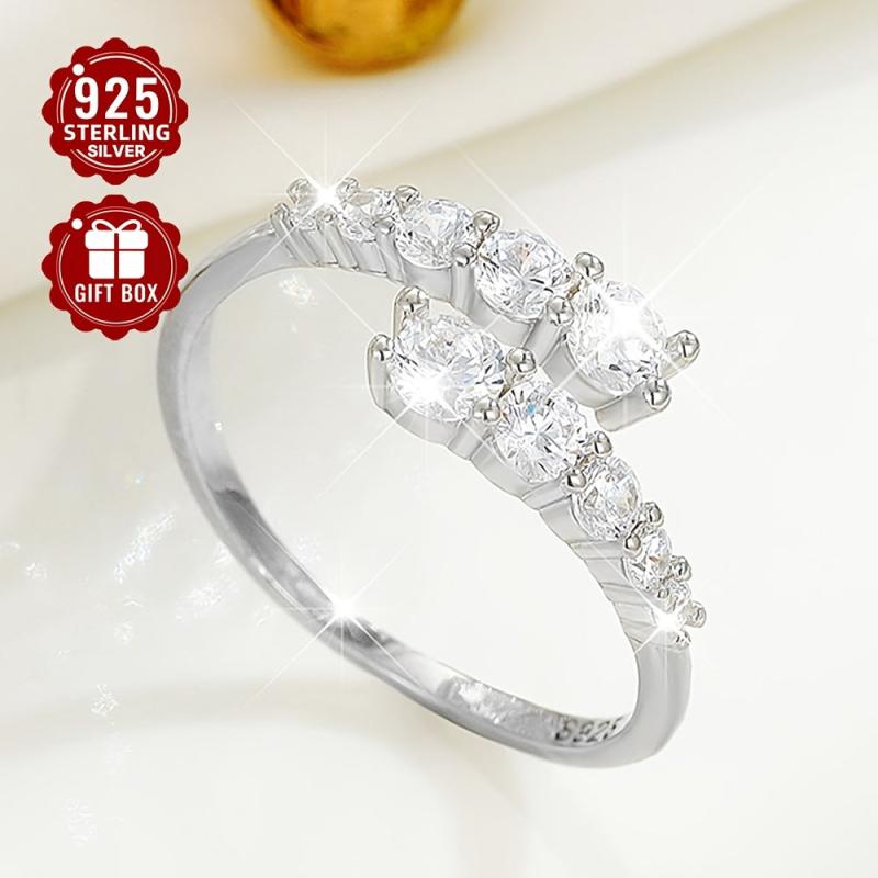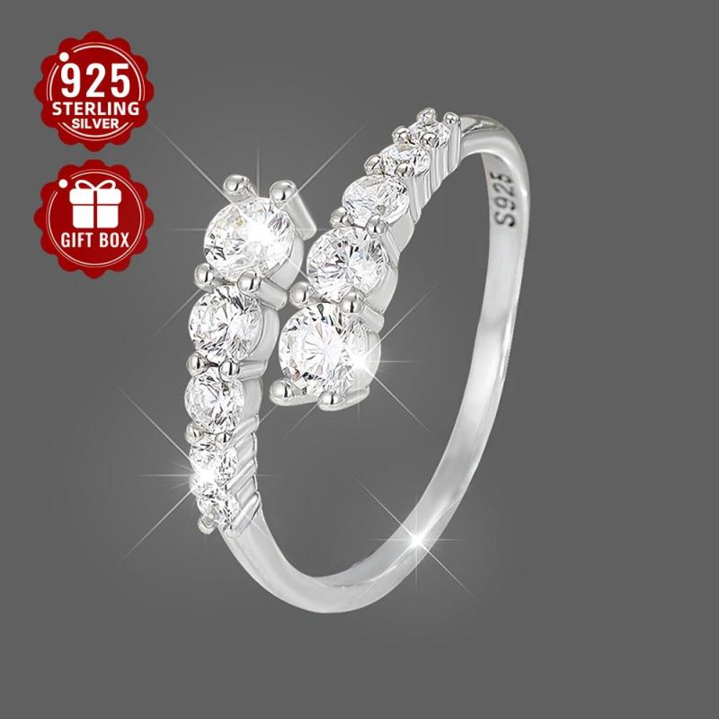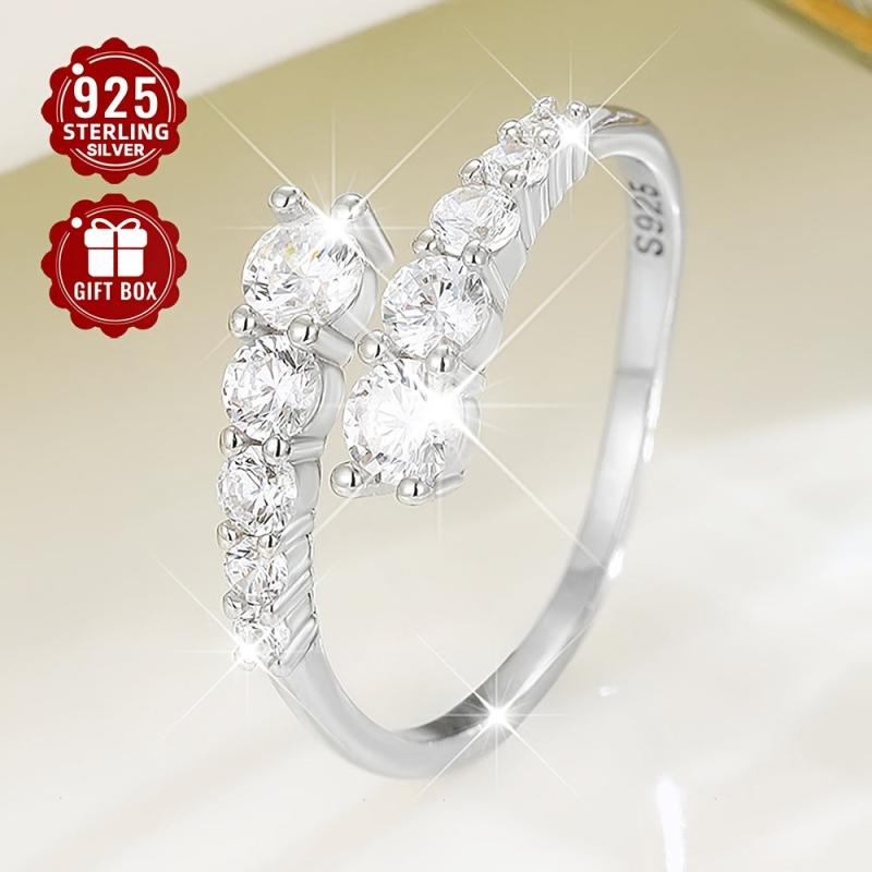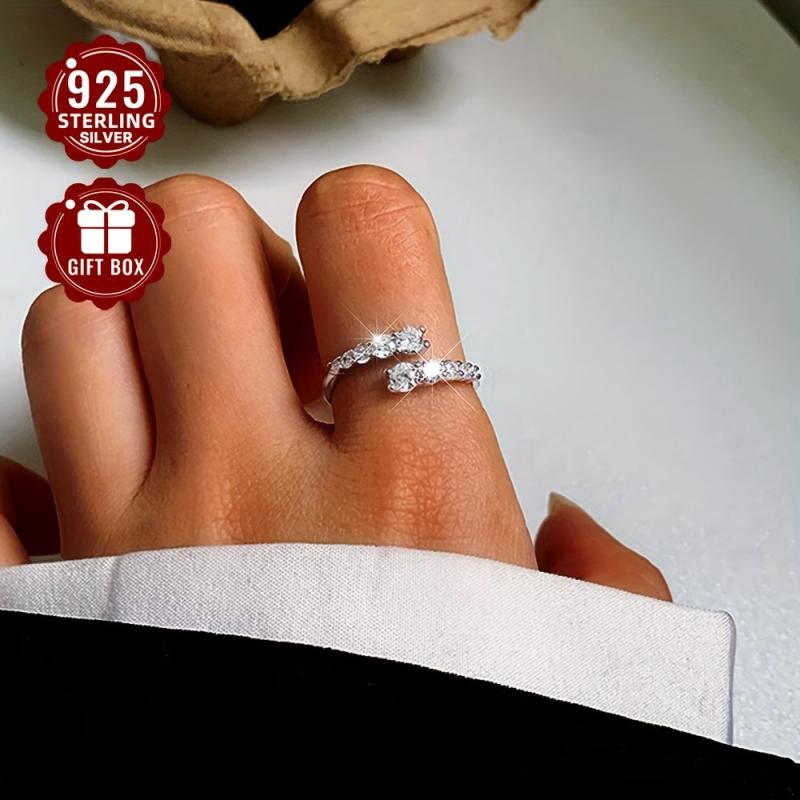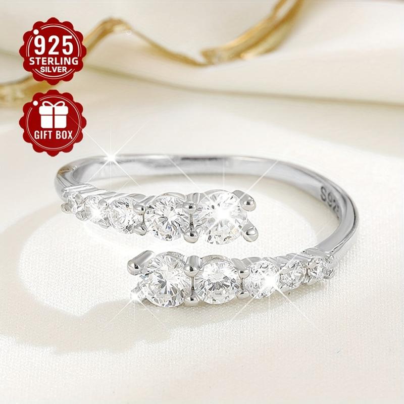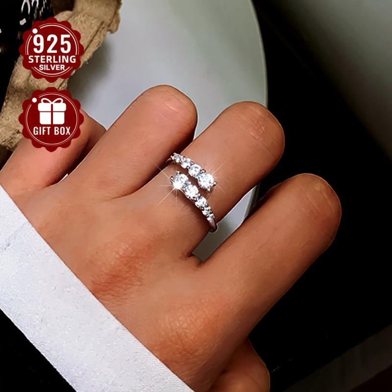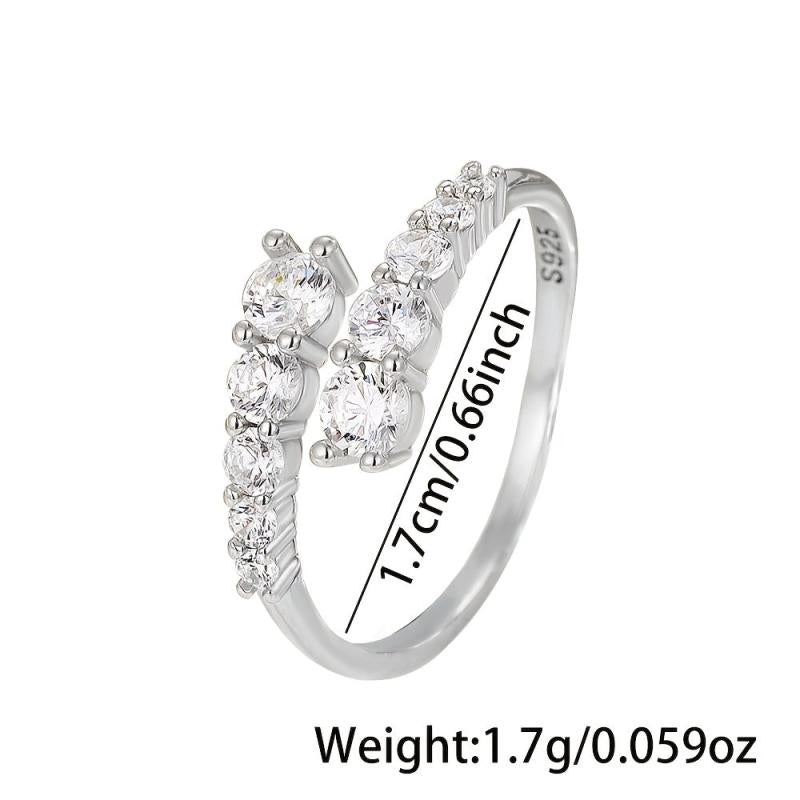 This elegant open ring features sparkling double rows of Synthetic Zirconia set in S925 silver. Perfect for a variety of occasions, this versatile jewelry piece adds a touch of sophistication to any outfit.