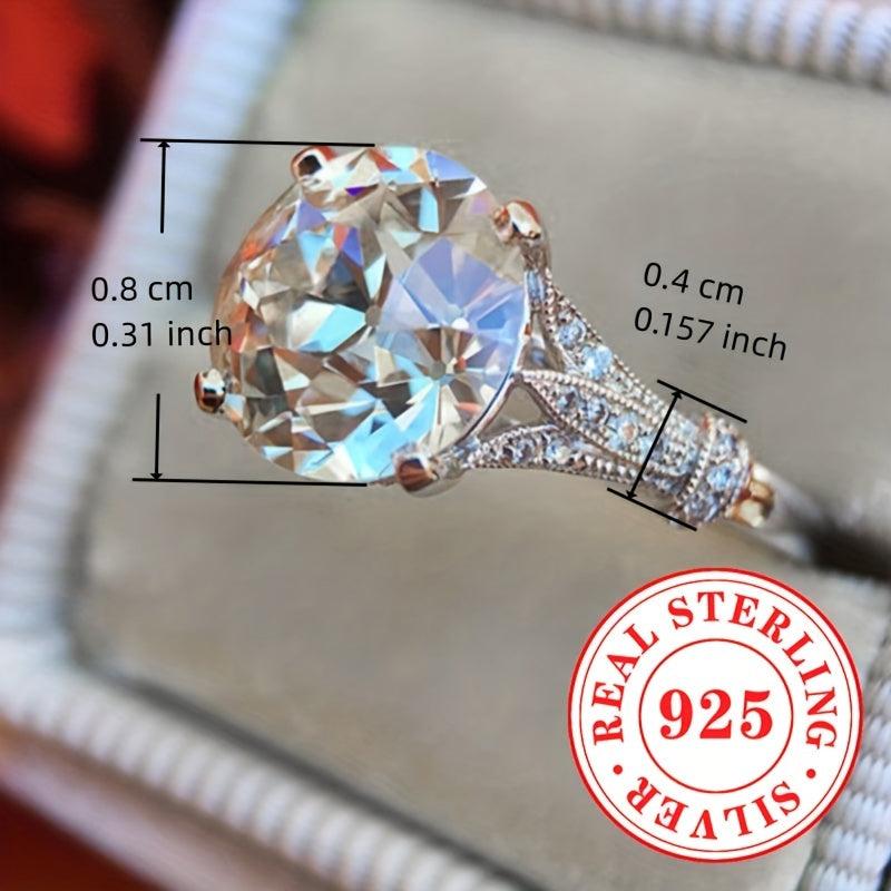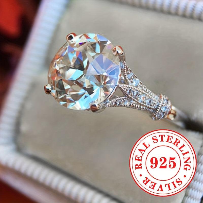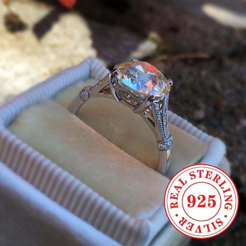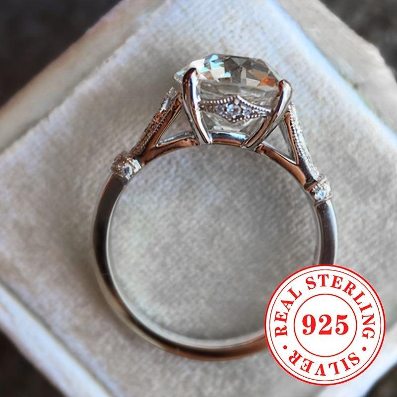 This stunning engagement ring features a synthetic zirconia stone set in a sleek S925 sterling silver band. Perfect for weddings or special occasions.
