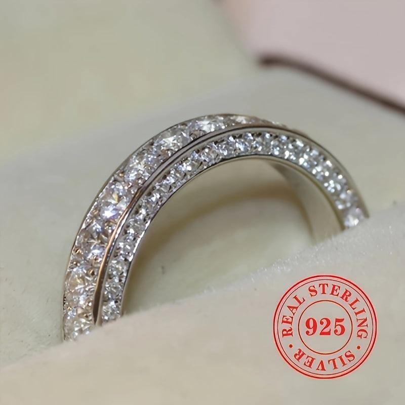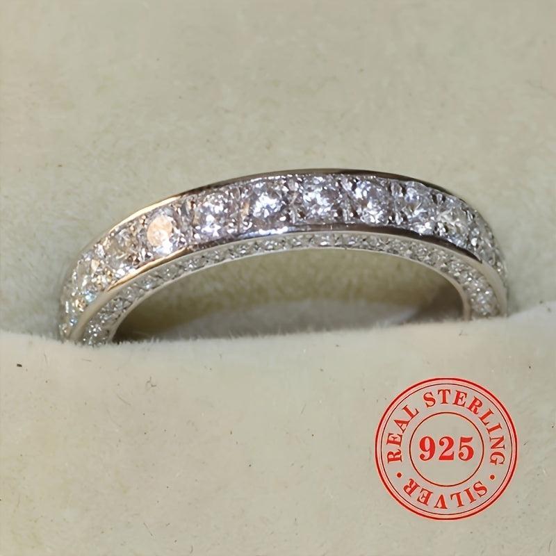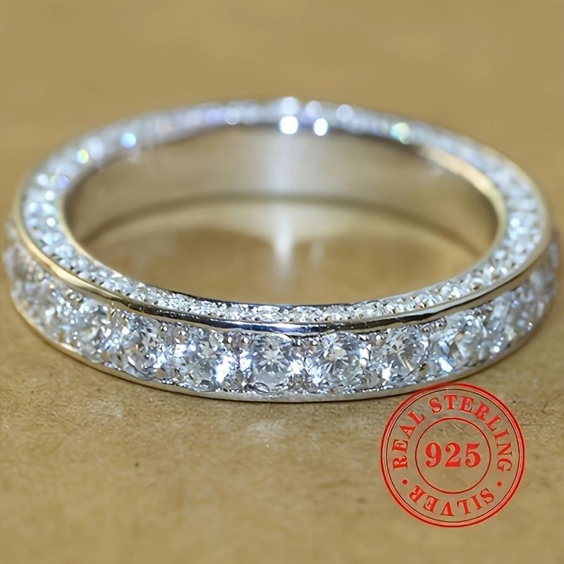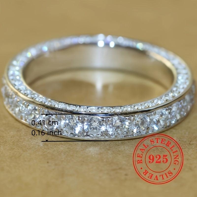 This elegant ring is made of S925 sterling silver and features a single row of synthetic zirconia stones. It is perfect for daily wear, engagements, weddings, and anniversaries.