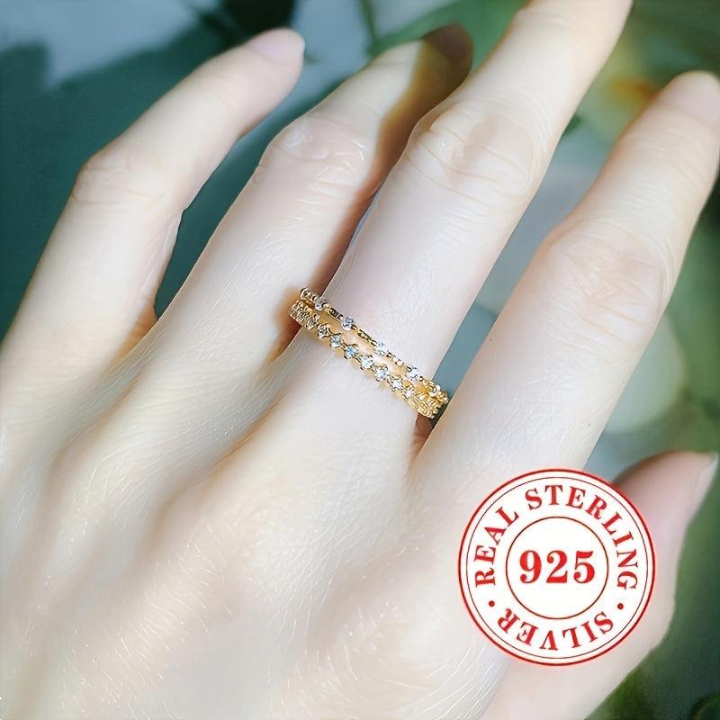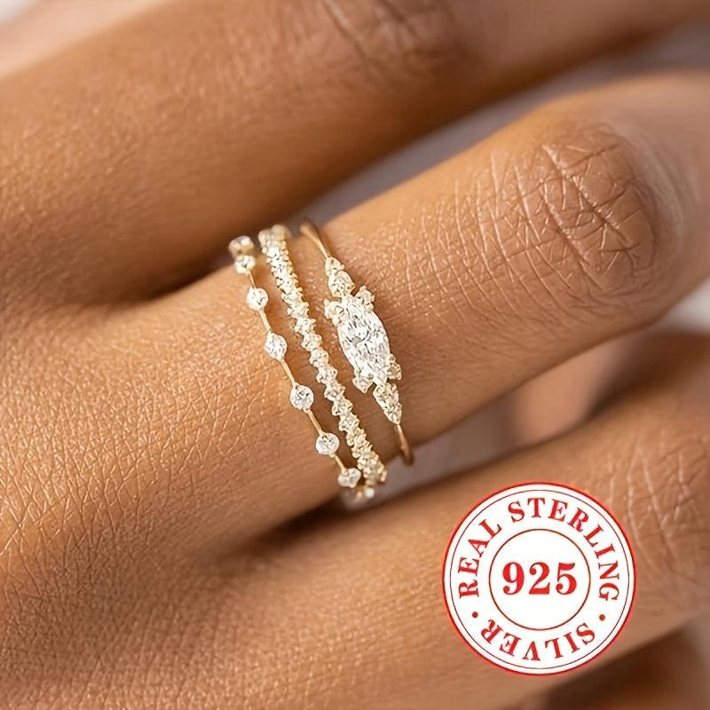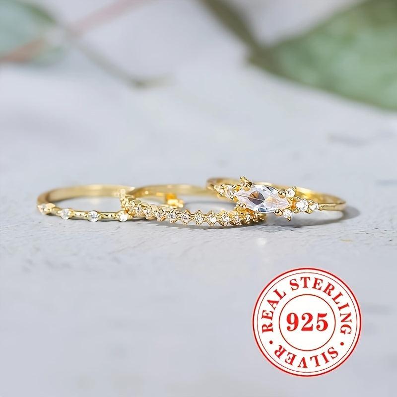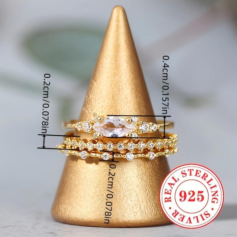 Stylish set of 3 stackable rings made of 925 silver with synthetic zirconia, plated with 18K gold. Perfect for all seasons and holidays. Casual jewelry for everyday wear.
