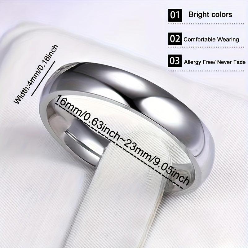 This elegant 4mm stainless steel ring is perfect for engagement or wedding. It is hypoallergenic, washable, and makes a great Valentine's gift.