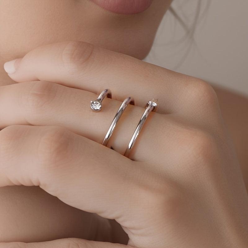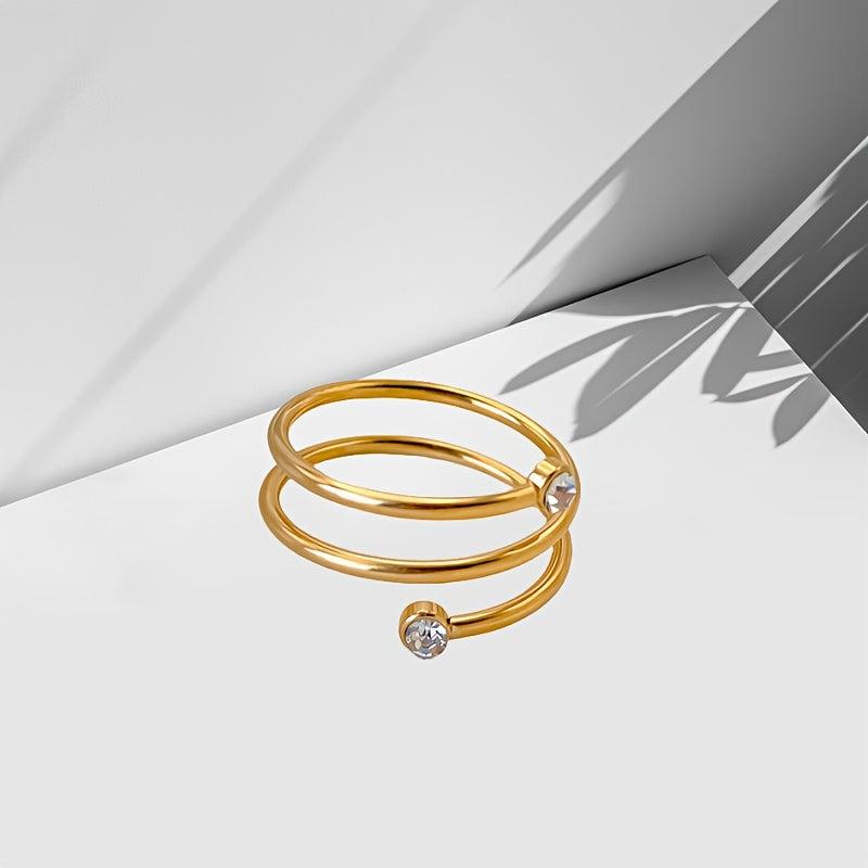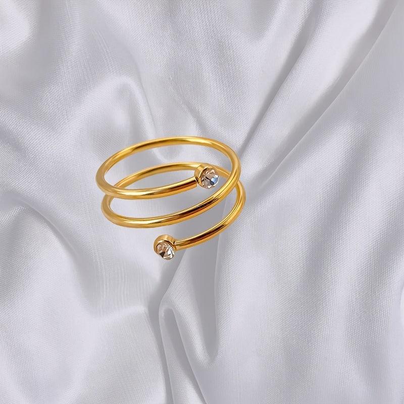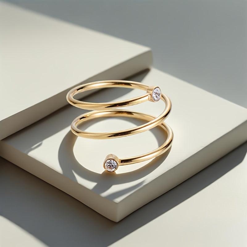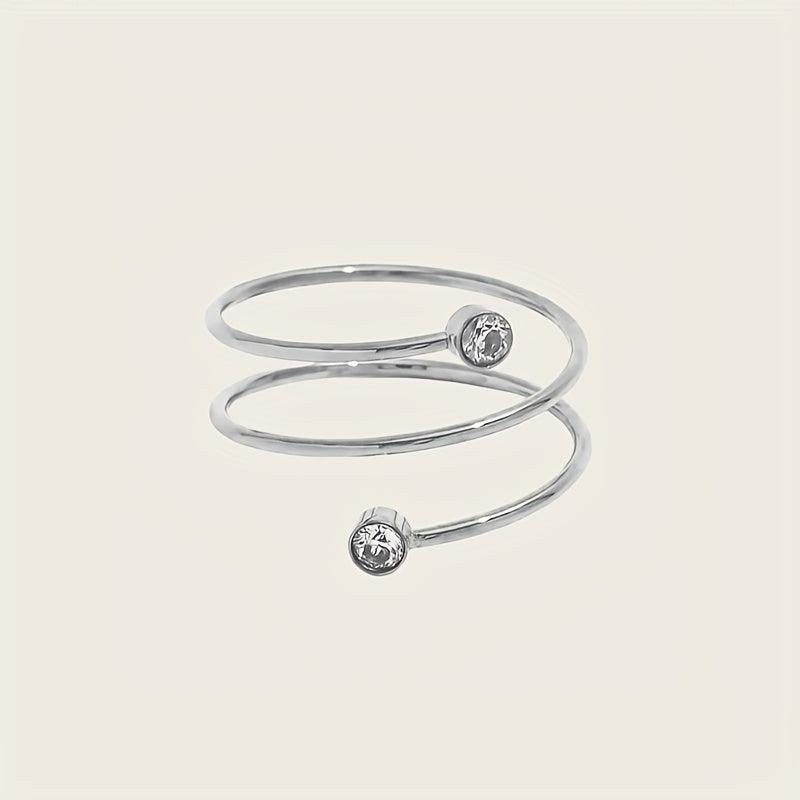 Elegant and minimalist stainless steel coil spring ring with rhinestone accents, perfect for daily wear and gift giving.
