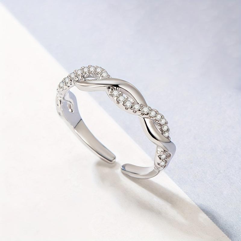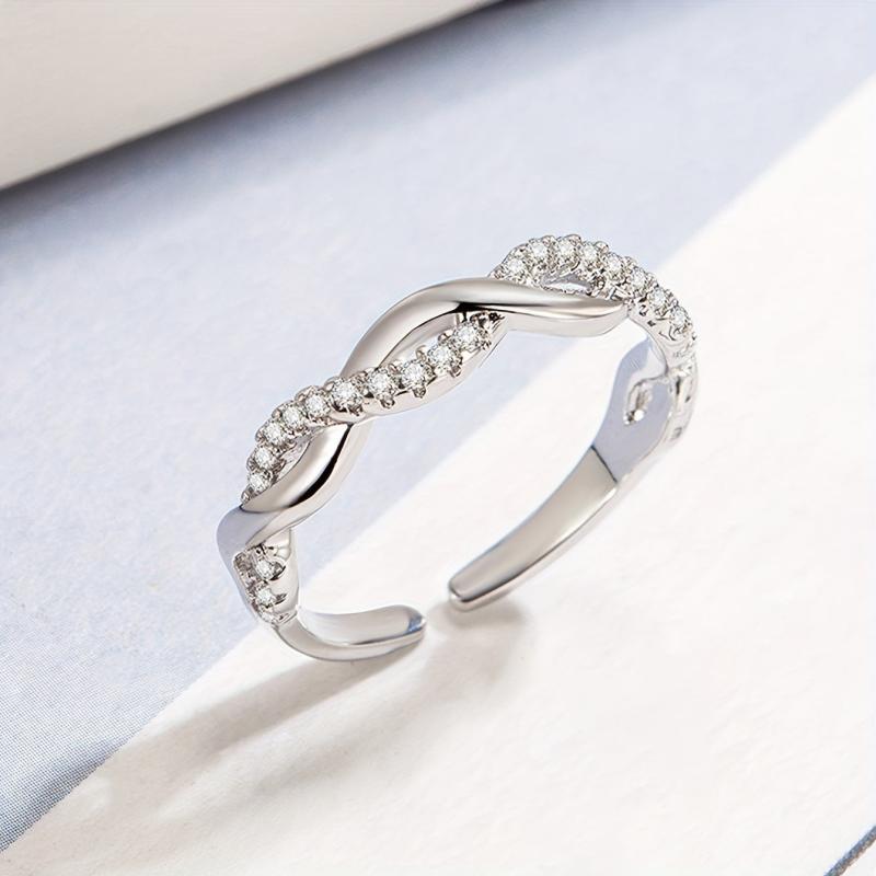 Shine bright with this stunning statement ring that combines intertwining copper design with sparkling rhinestones. Perfect for all seasons, this adjustable ring is a shining addition to your jewelry collection.