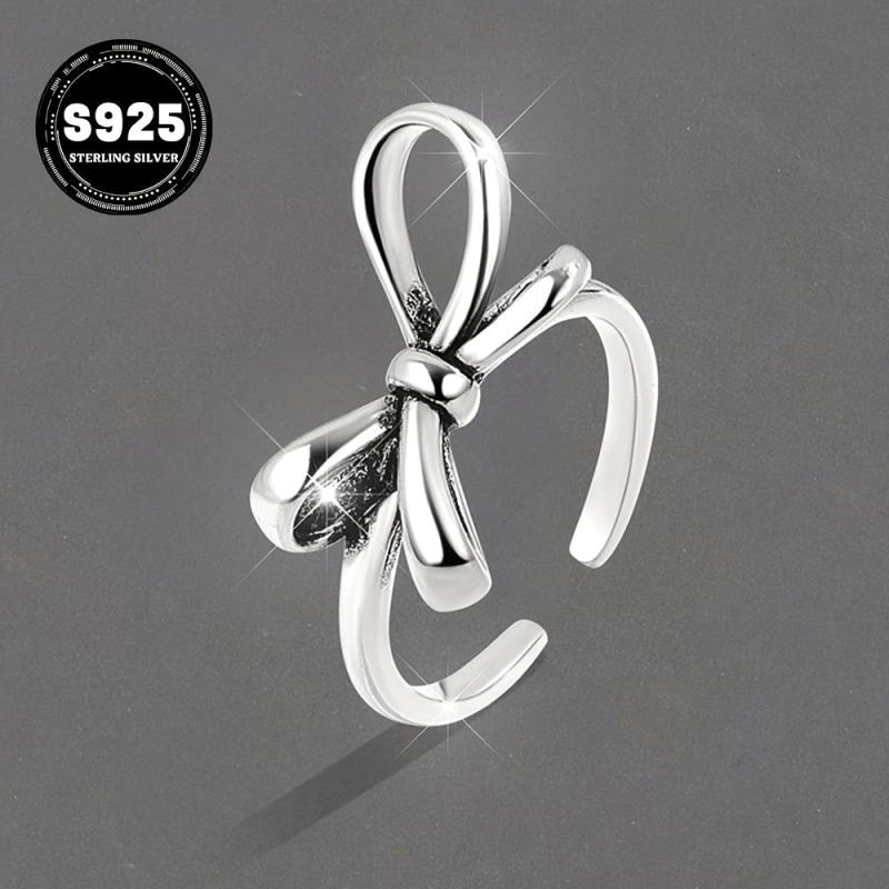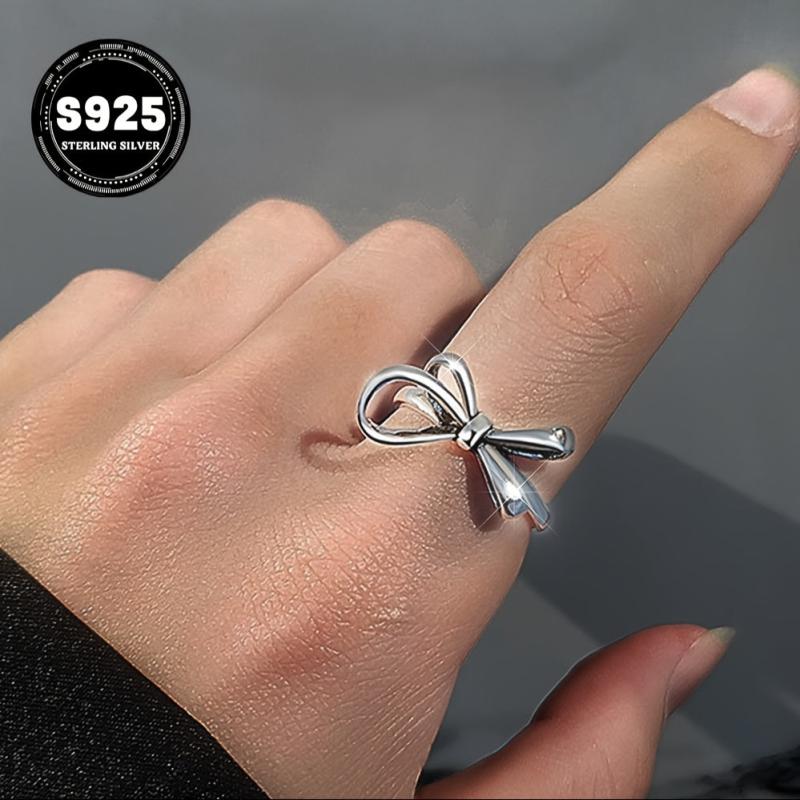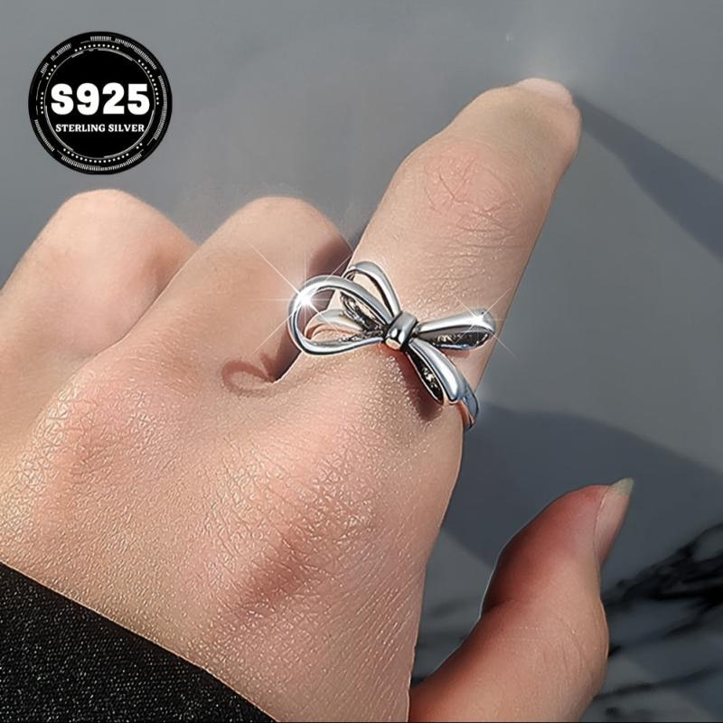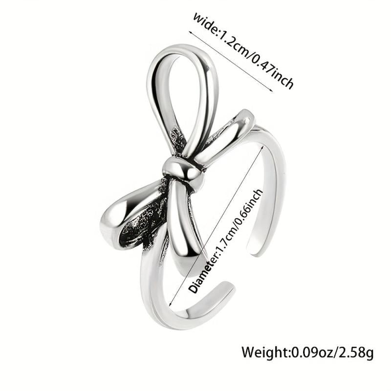 Elevate your style with this elegant sterling silver ring featuring a light bowknot design. Perfect for daily wear and gifting, this adjustable ring is a versatile accessory for any season.