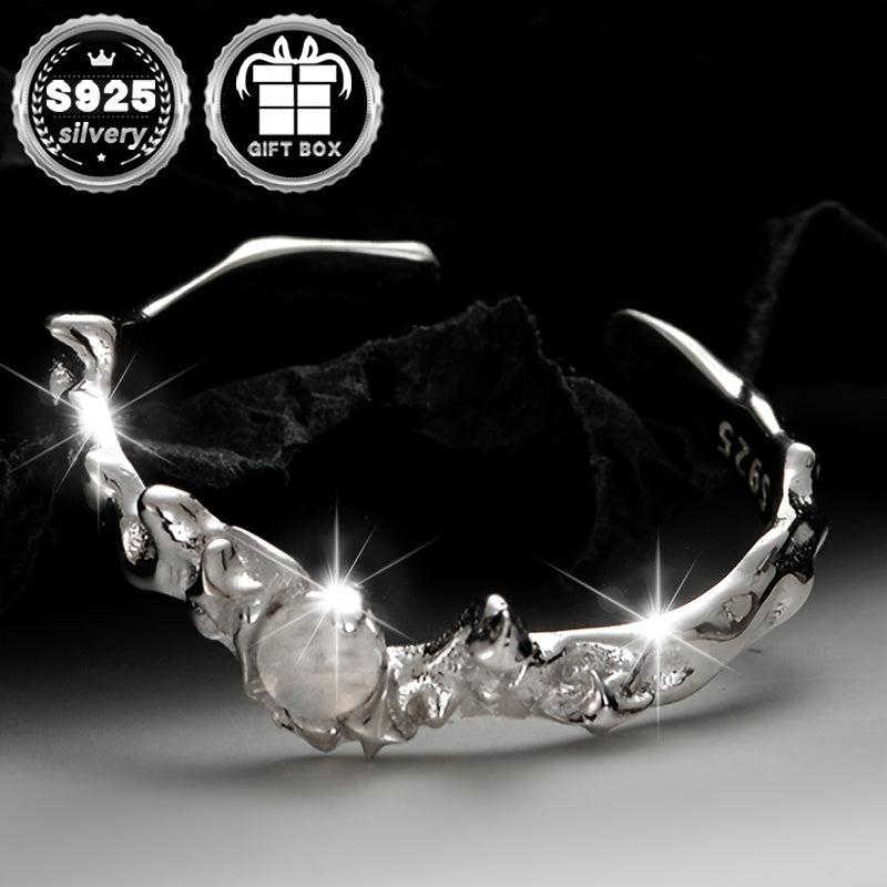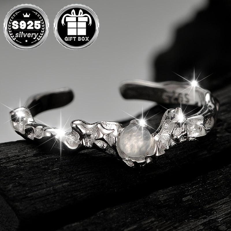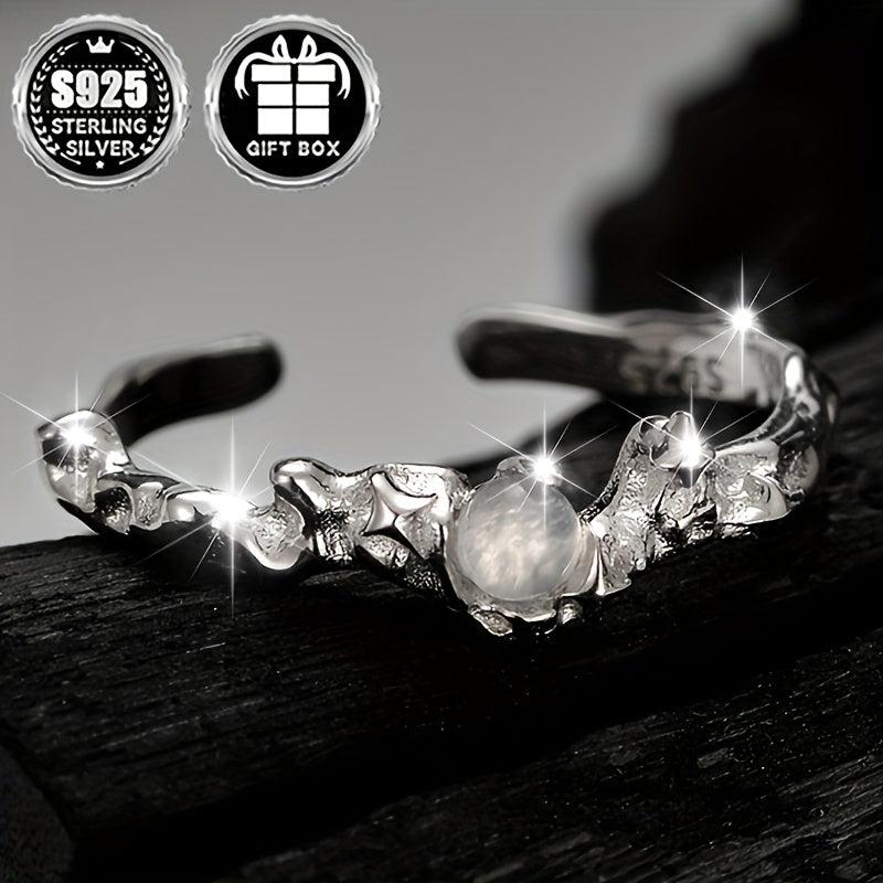 This stunning open ring is made of sterling silver with an irregular concave and convex design, featuring an agate stone. Perfect for daily wear or special occasions.